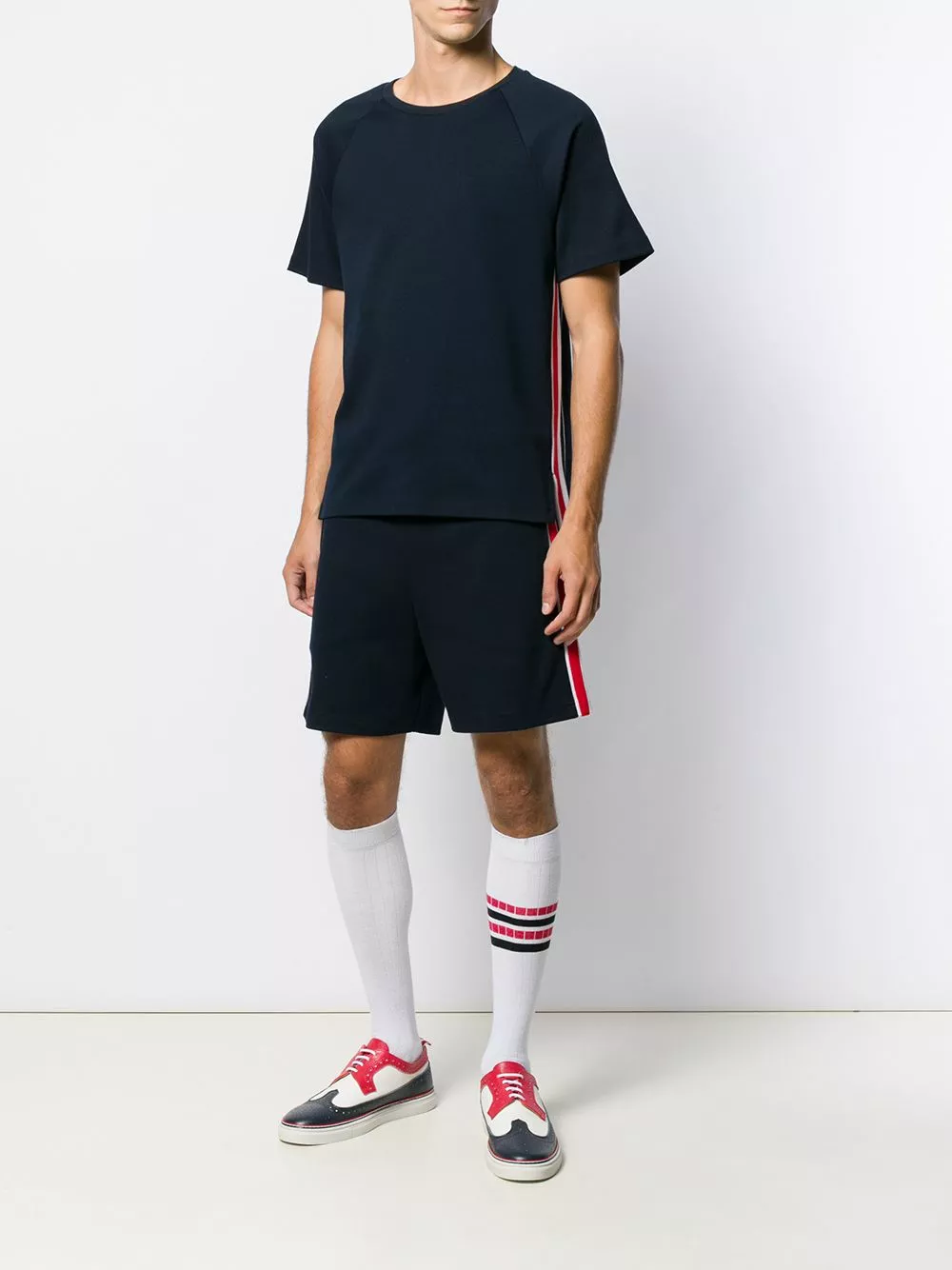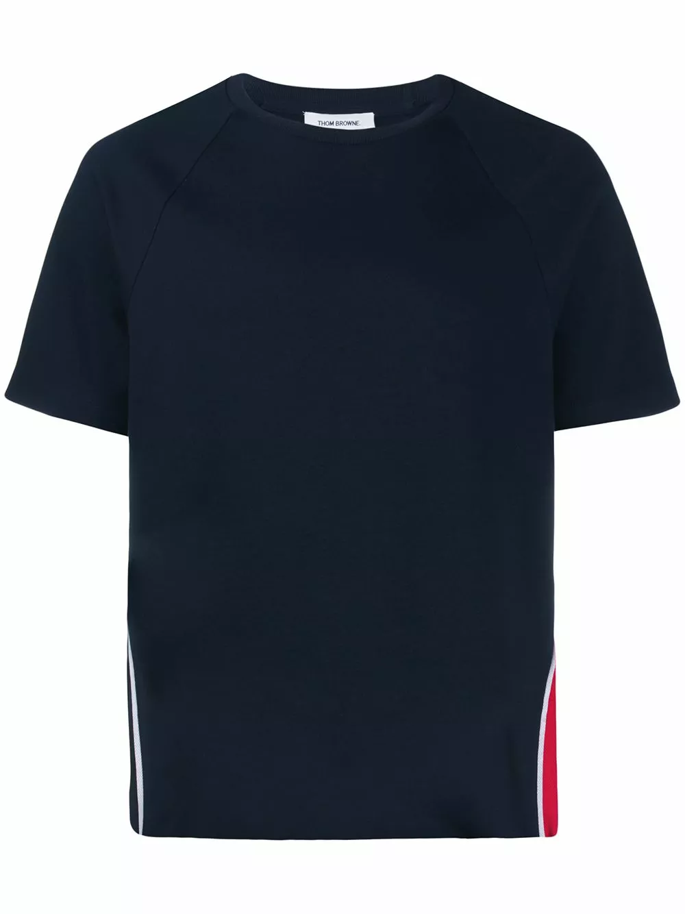 Thom Browne’s latest menswear collection saw a technicolour re-interpretation of archival preppy silhouettes, with the American label boldly pushing the boundaries through garish prints and surreal proportions. Crafted from crisp cotton, this T-shirt is detailed with the brand’s signature tri-colour stripe to the outer seam. Featuring a relaxed fit, short sleeves and a round neck.