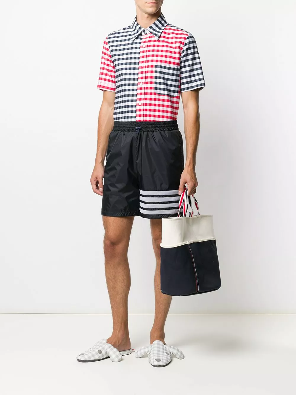 Thom Browne has done it again; introducing the double-face tote bag, this season’s staple accessory. Complete with signature striped top handles and internal zip pockets, it’s the perfect blend of practicality and new season style. Sleek, chic and oh so unique.