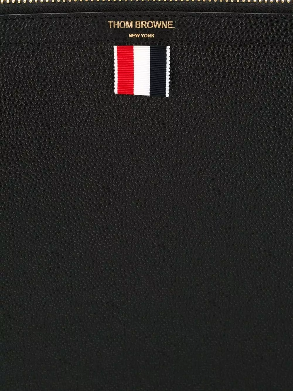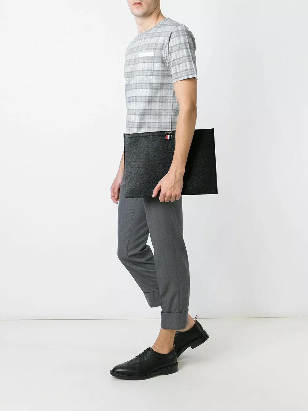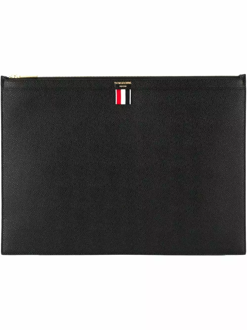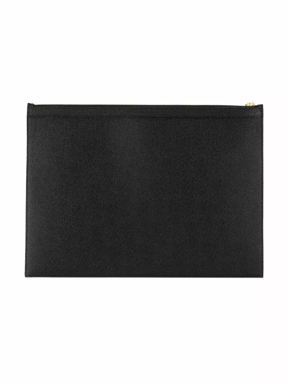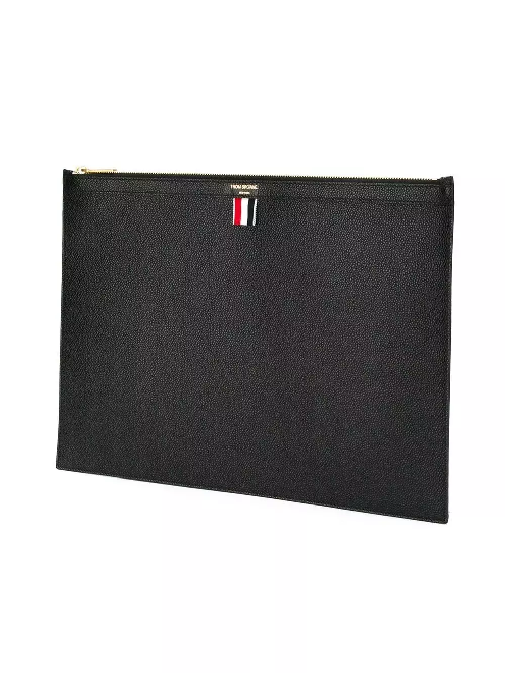 Take your computer with you everywhere courtesy of Thom Brown. In black pebbled leather, this large zipper laptop holder sports a streamline construction for ease of carrying. Plus it looks super slick too! Featuring a top zip closure and a main internal compartment.