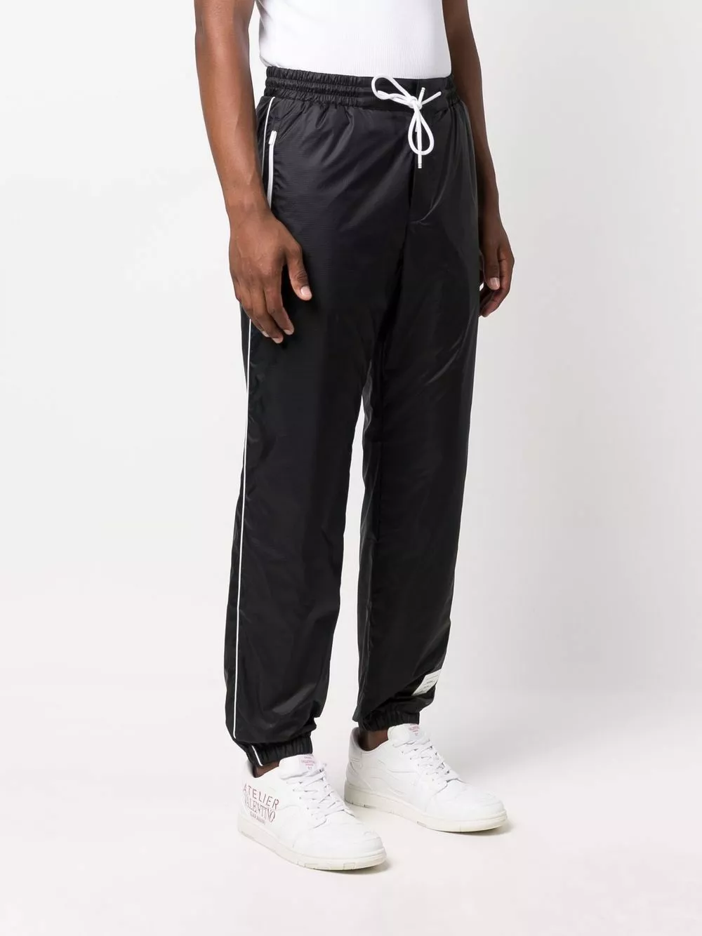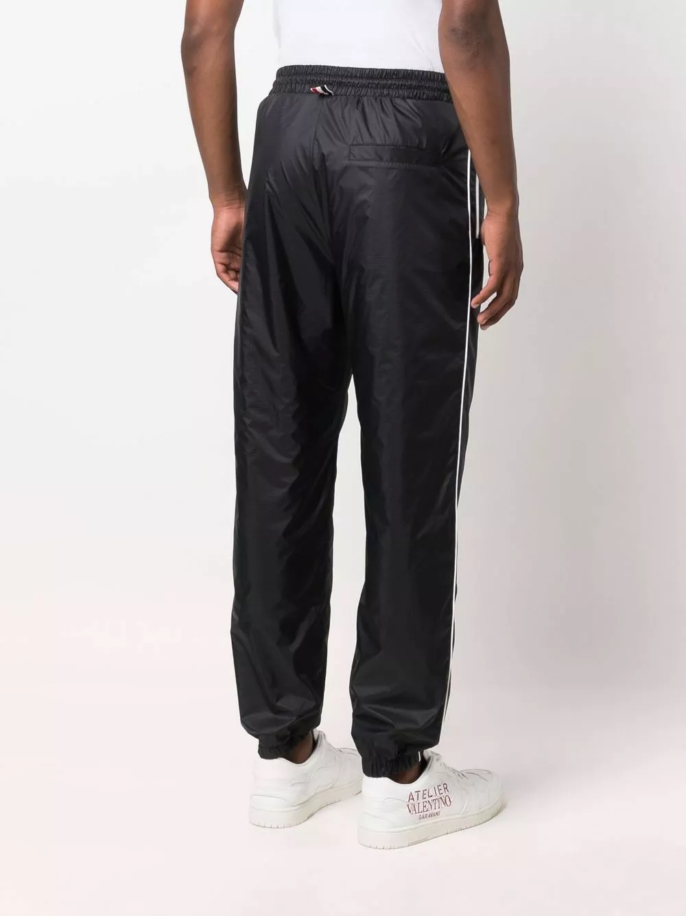 Thom Browne’s sleek athleisurewear has become a brand mainstay. Secured with a drawsting, these track pants encompass the house’s contemporary edge with their bold contrast white piping.