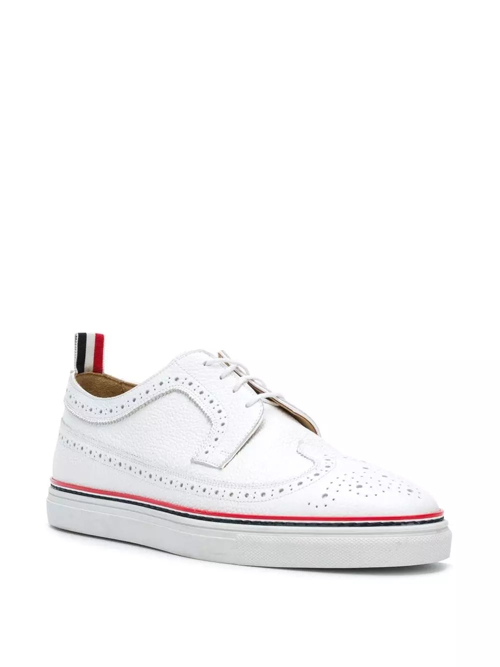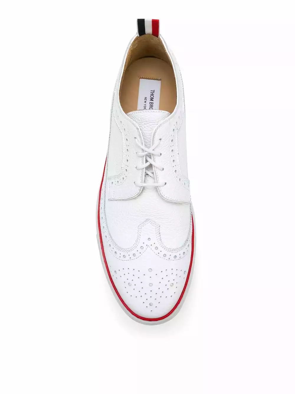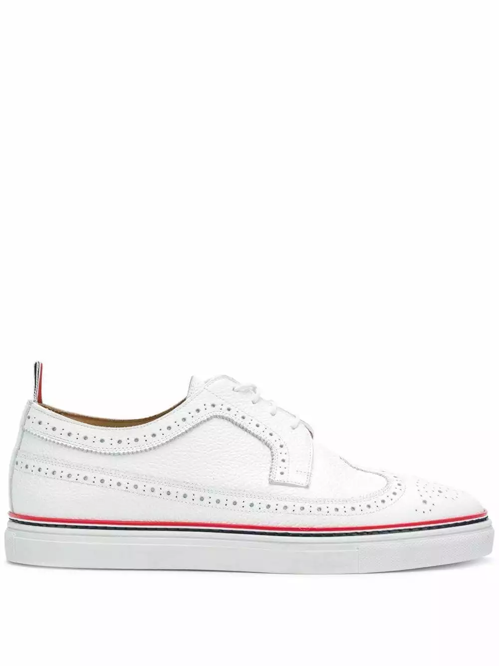 We’re not trying to be like your mother, but you really should have a nice pair of brogues for those family Sunday lunches. And these white leather Longwing cupsole brogues from Thom Browne would make your mum so, so proud. Yes, you can wear sneakers for 6 days a week. Featuring a round toe, a lace-up front fastening, a branded insole, a pebbled leather texture, a tonal cupsole, a signature Grosgrain Loop Tab and contrasting RWB trim.