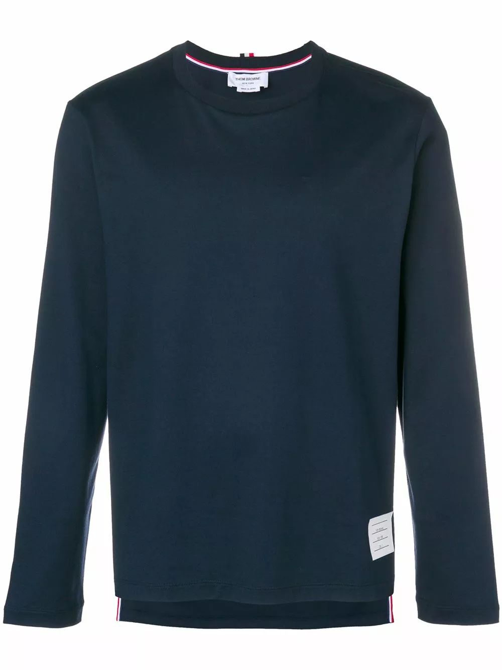 Blue cotton loose fit longsleeved T-shirt from Thom Browne featuring a round neck.