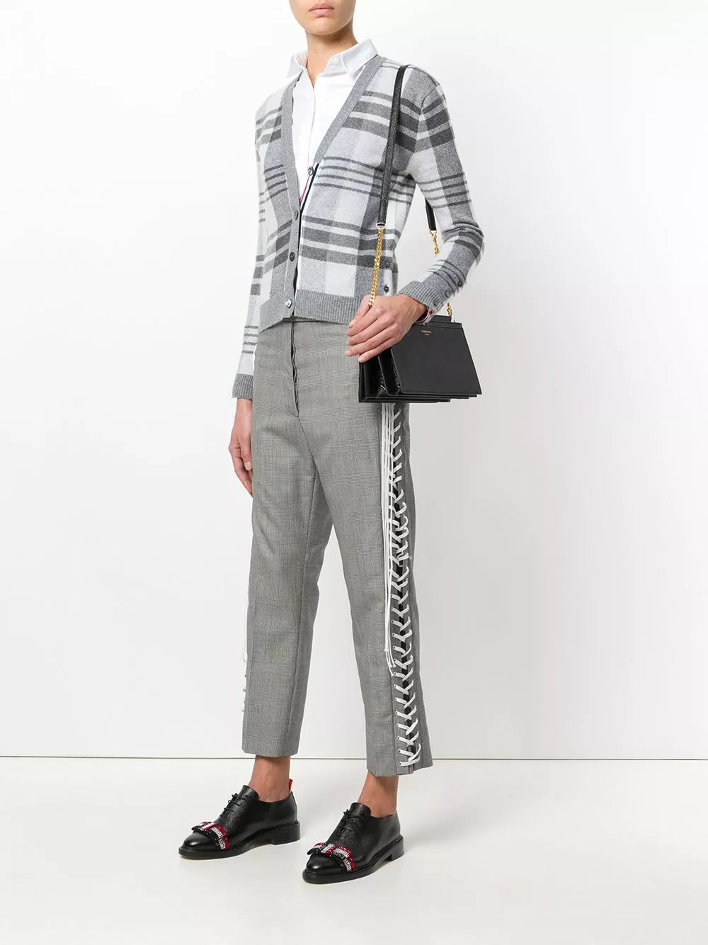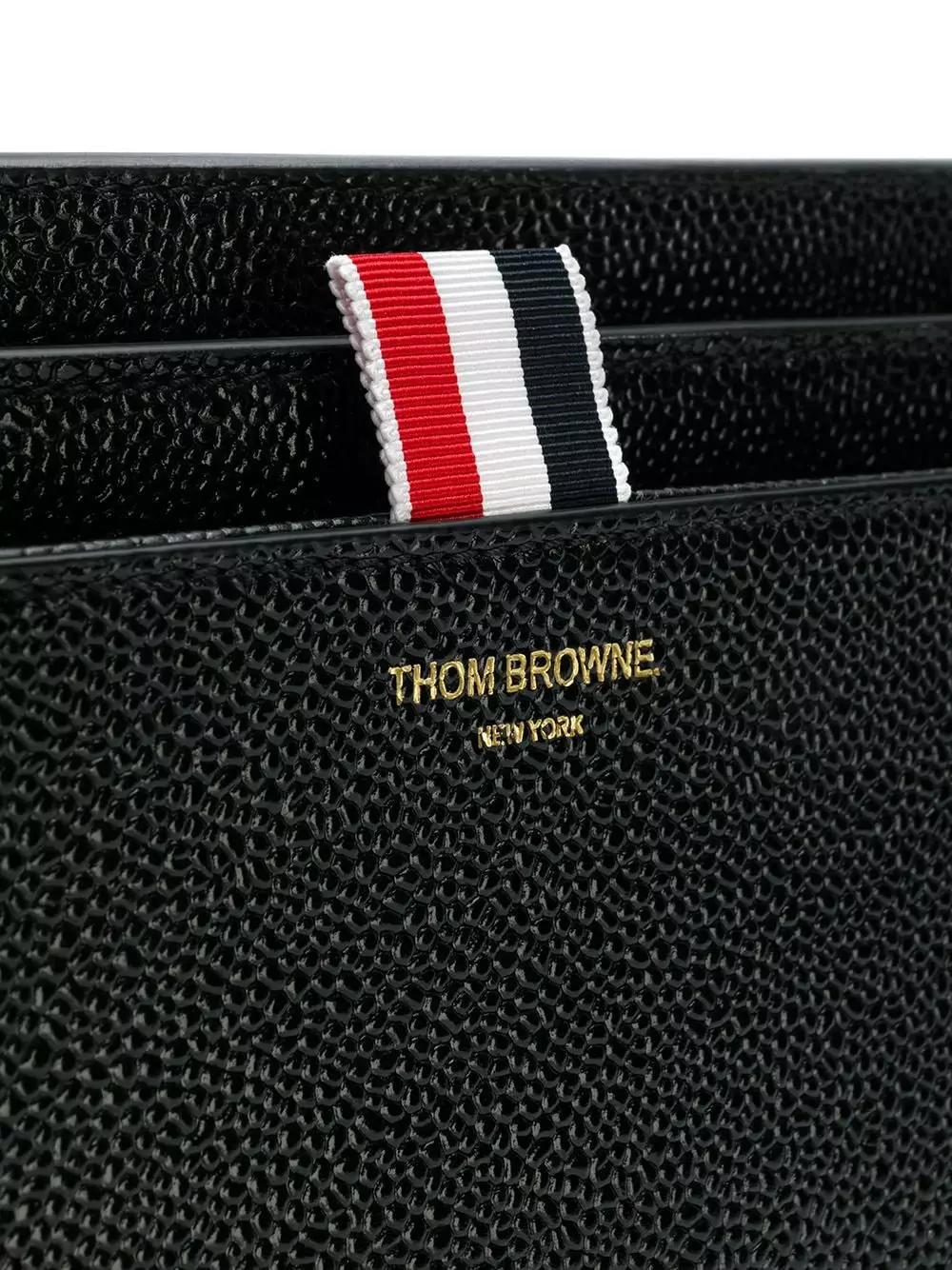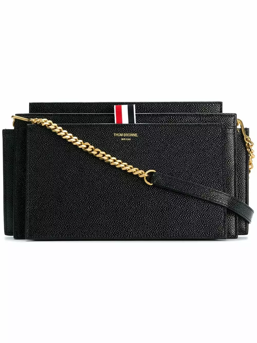 Thom Browne Lucido shoulder bag is crafted from black grainy leather and cut to an accordion design that creates a roomy interior. The simple silhouette is adorned with the brand’s iconic grosgrain loop tag in navy-blue, red and white, while the gold-tone hardware adds a classic finish.