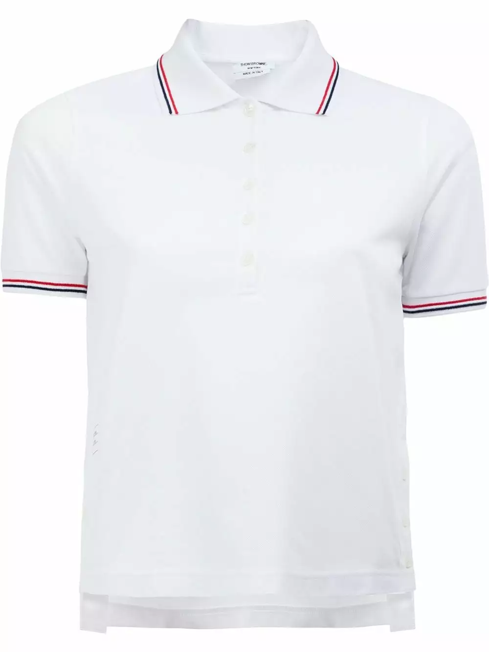 Part of a capsule collection inspired by timeless tennis court styles, Thom Browne has brought his unmistakable style to the traditional polo shirt. Constructed from a soft cotton pique perfect for the warmer weather, this summery piece finds the edges being given Browne’s idiosyncratic contrast trimming, while the sides are given slits that can be fastened by subtly-applied buttons. Elsewhere, the classic polo collar gives way to a front button placket, short sleeves, a straight hem and the signature Thom Browne stripe detail laundry tab at the rear as a finishing touch.