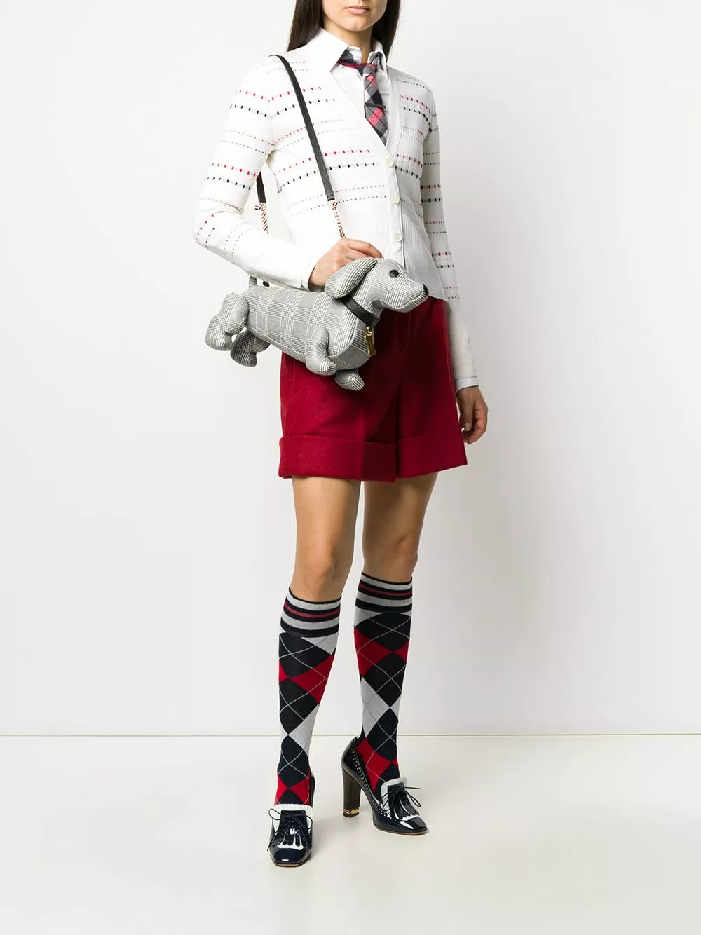 Thom Browne’s embrace of preppy menswear has translated effortlessly over into a women’s line that’s every bit as playful as it is polished. Is there anything more playful that this Prince of Wales check mini Hector bag from Thom Browne? We don’t think so! Featuring a chain and leather strap, a top zip closure, a dog tag, an internal logo patch and a Prince of Wales check.