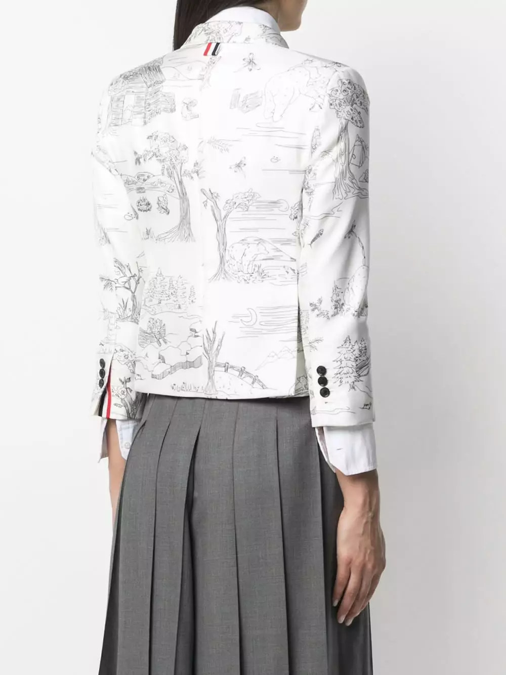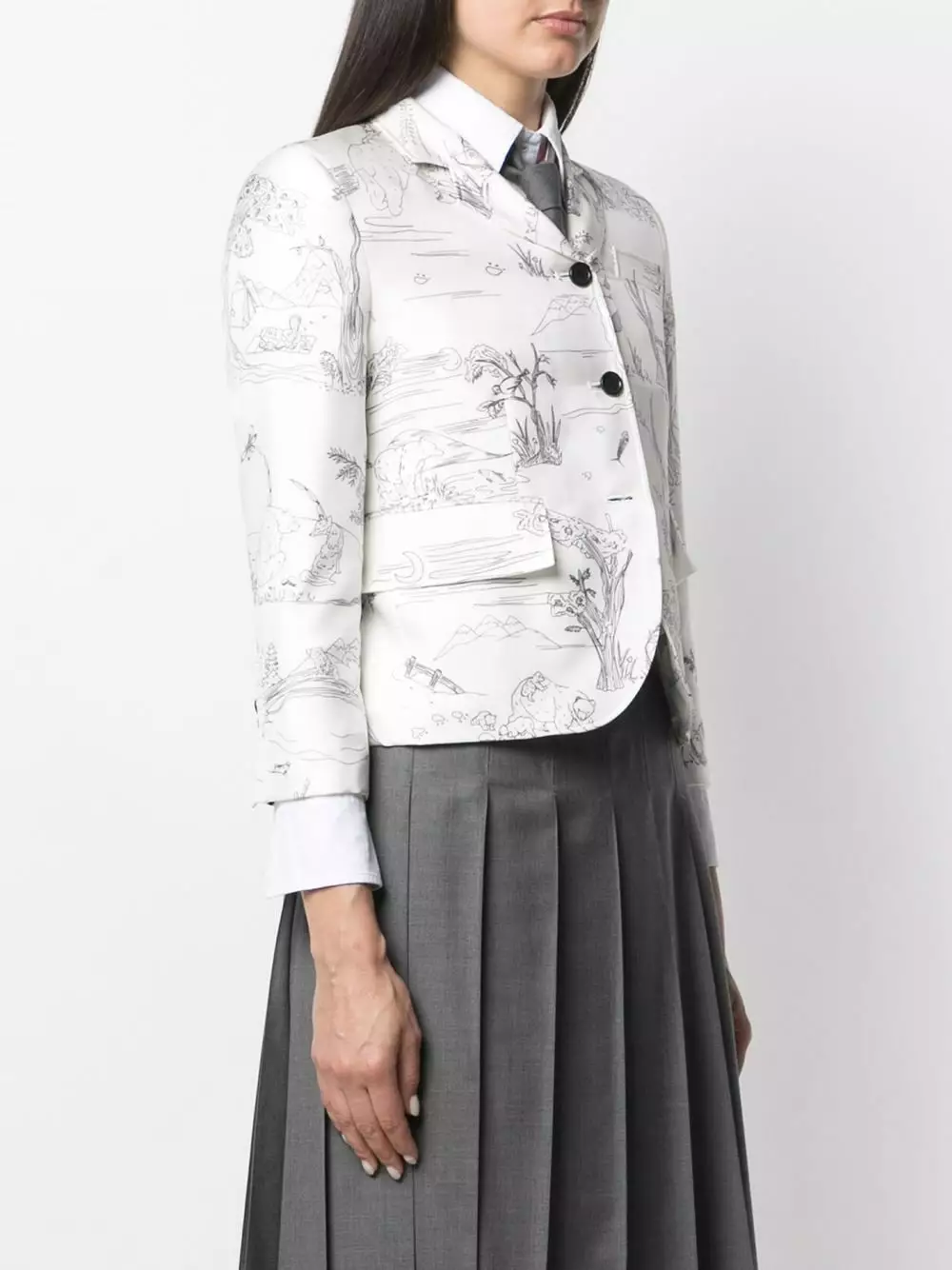 The expression ‘cherry on top’ commonly means that something special is added to something else that’s also very nice to make it just that much more enriched. That’s what will happen to your outfit today once you throw on this mix-print silk blazer from Thom Browne before leaving the house. Right on point.