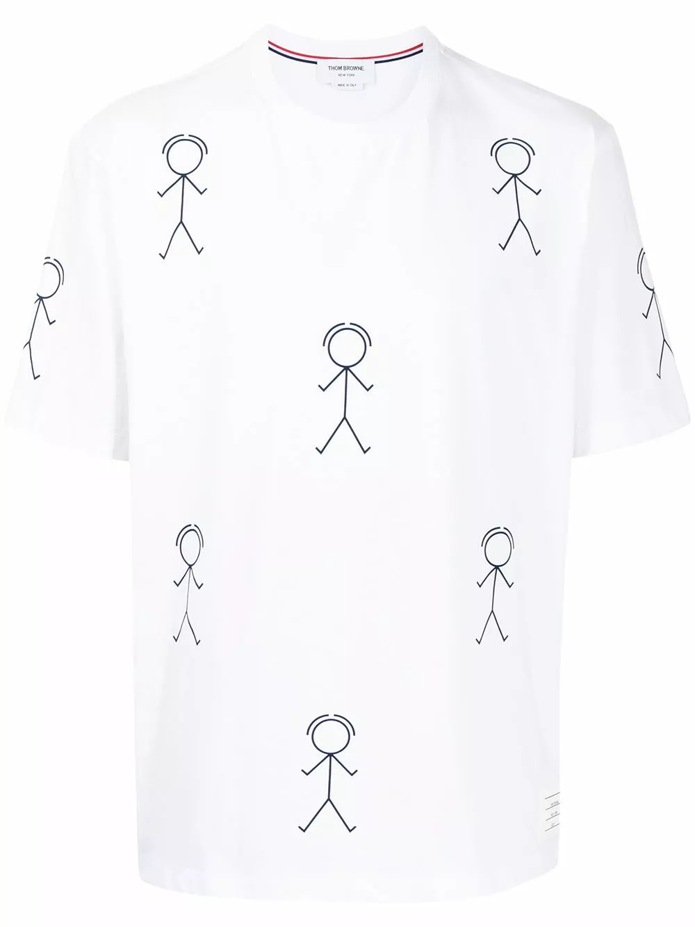 A basic with a Thom Browne twist. Crafted from 100% cotton, this straight-fit shirt comes with a logo tag at the front, a grosgrain loop tab at the rear, and a Mr. Thom icon print all over it for a recognisable look.