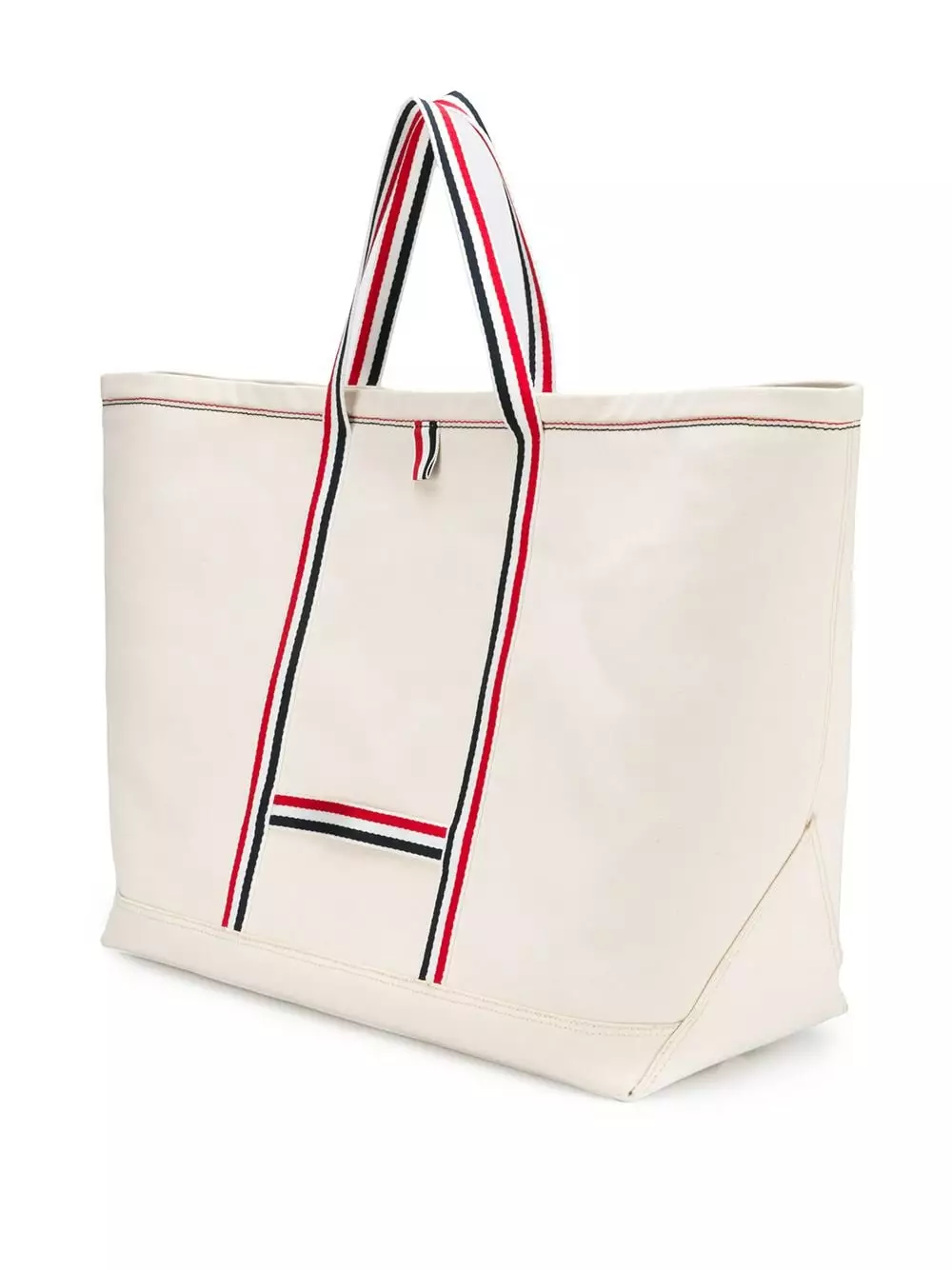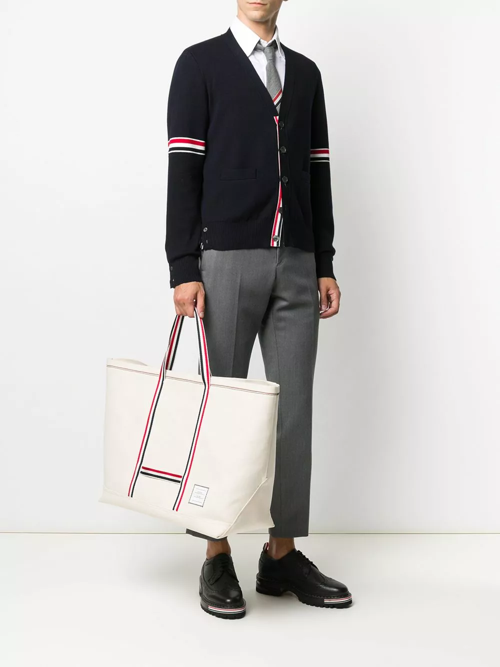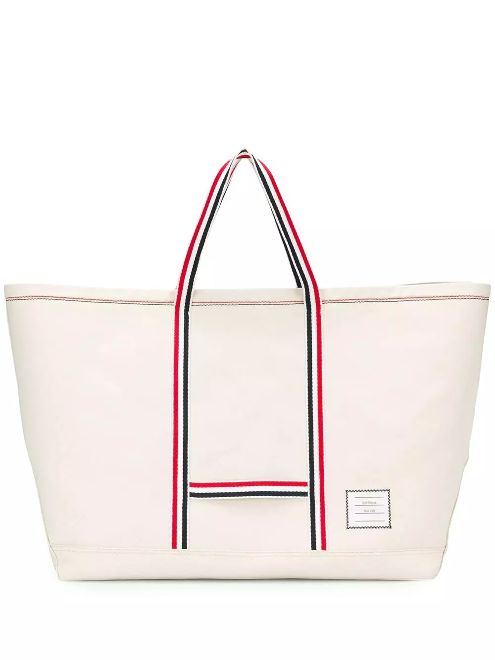 C’est magnifique! This oversized Tool tote bag from Thom Browne is a euphoric accessory that screams Liberté! The utilitarian design and interior pockets are of functional design that will always be in use.