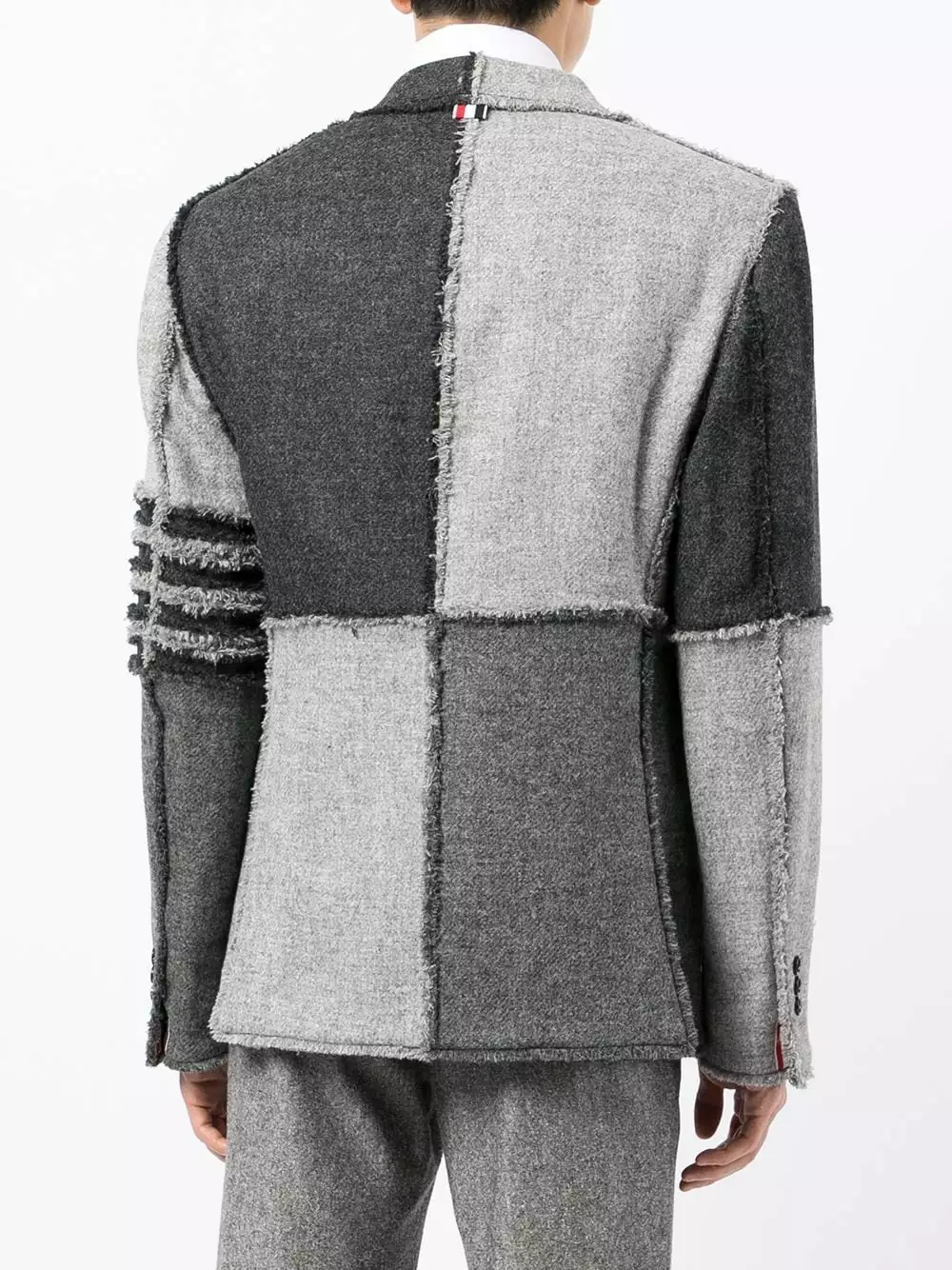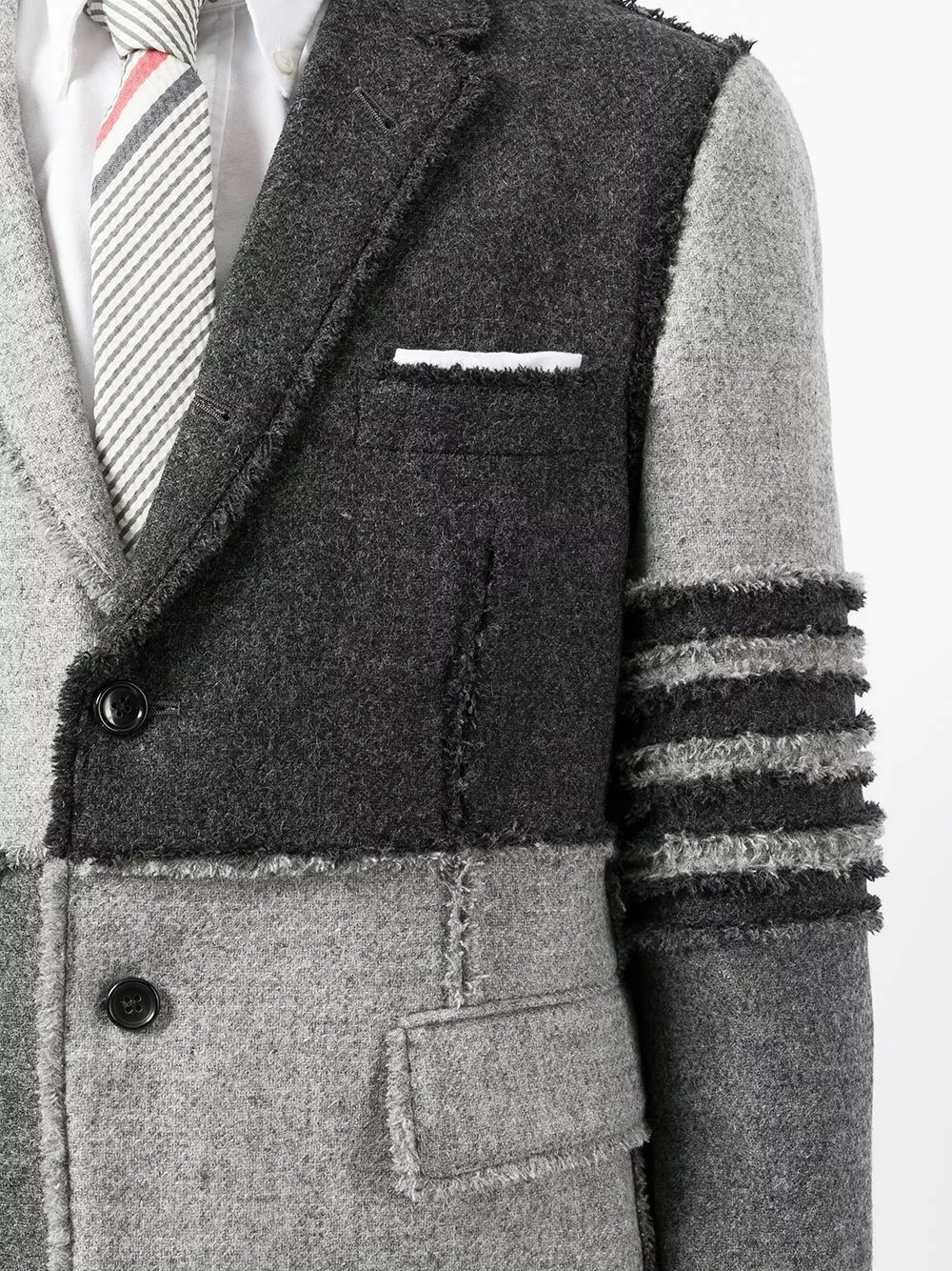Thom Browne’s ability to transform classic silhouette is showcased by this blazer. Crafted from wool and cut into a traditional single-breasted silhouette, its patchwork construction adds a contemporary touch – note the frayed details.