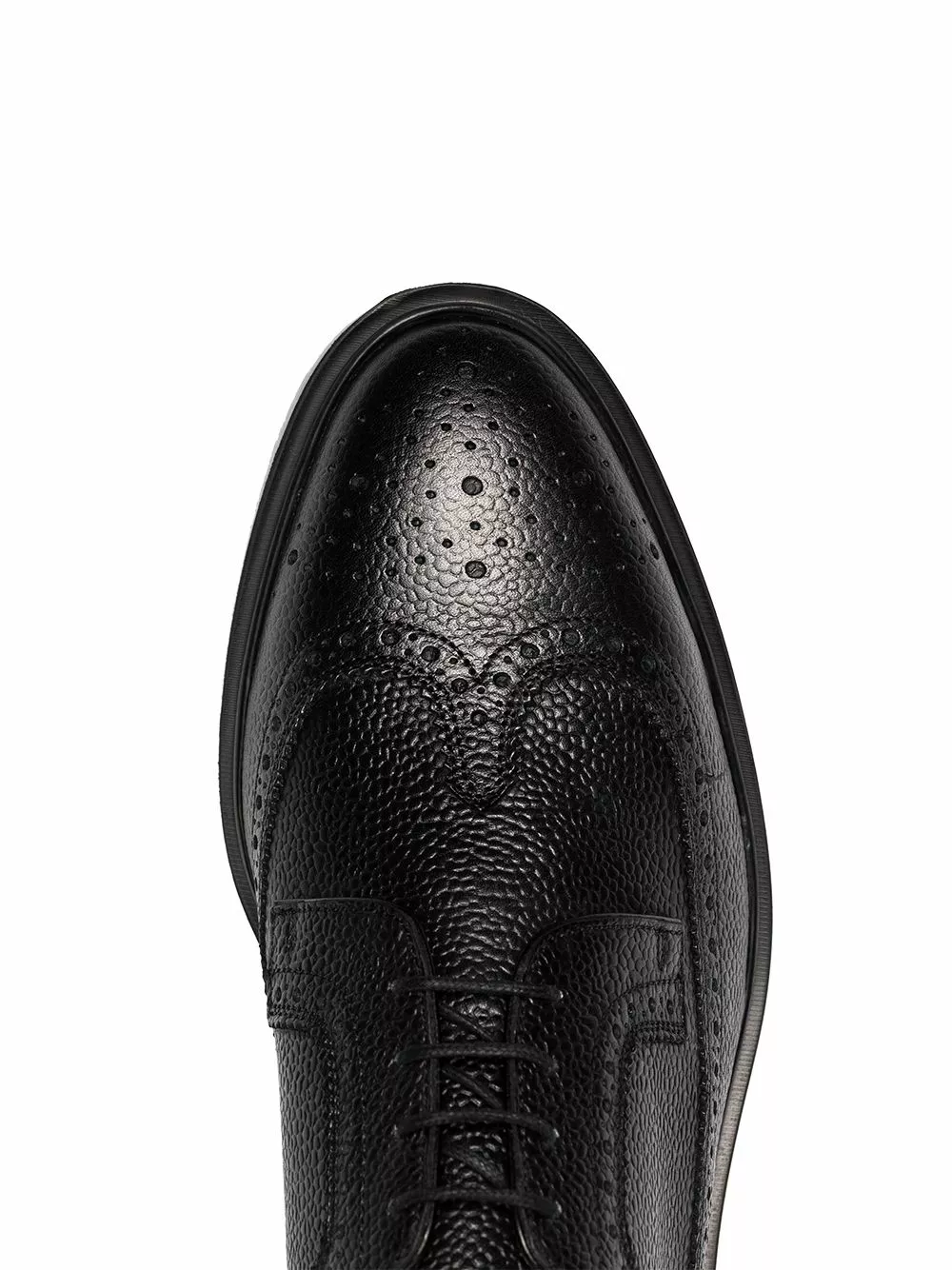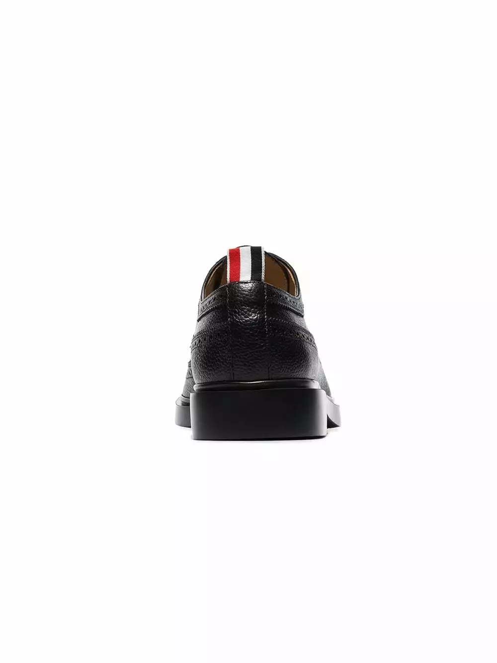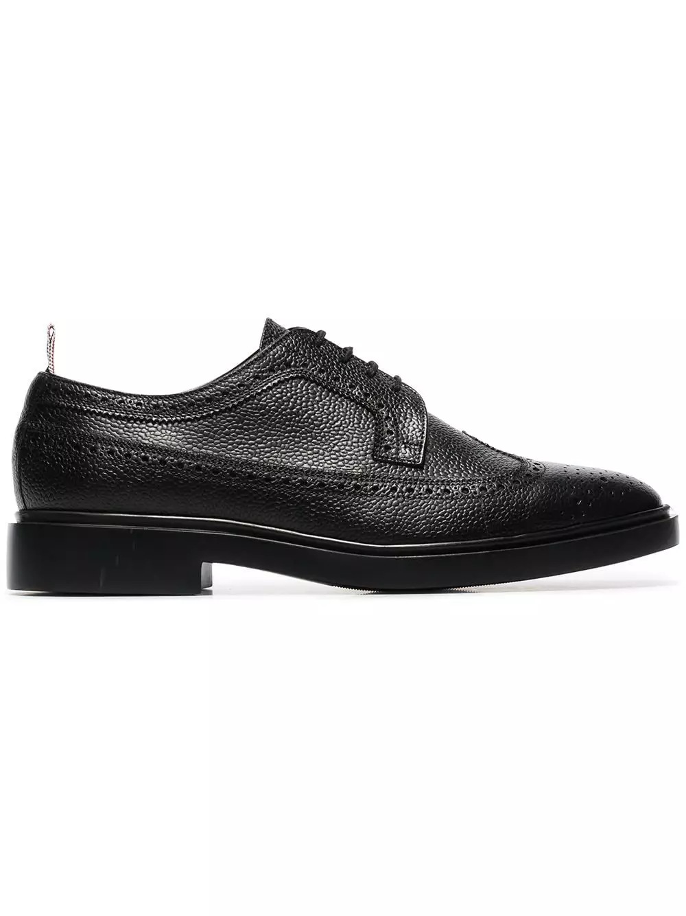 A lot of people wish they were in your shoes. These classic Longwing brogues from Thom Browne are about to take that to a whole new level. Literal and metaphorically. Featuring a round toe, a lace-up front fastening, a branded insole, a leather insole, a pull tab at the rear, a low heel, punch hole detailing, a wingtip design and a chunky leather sole.