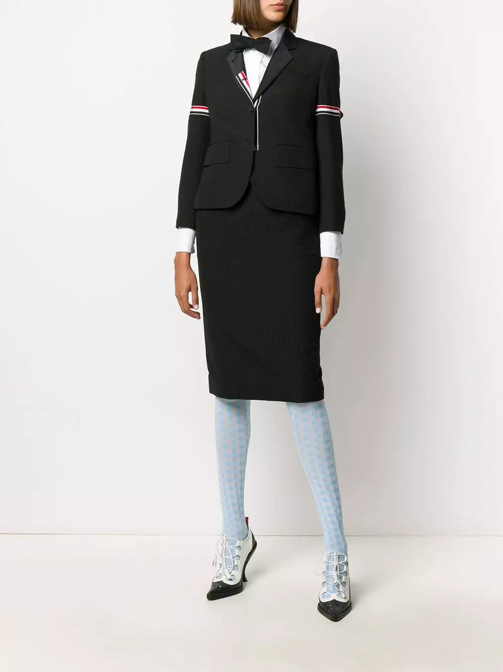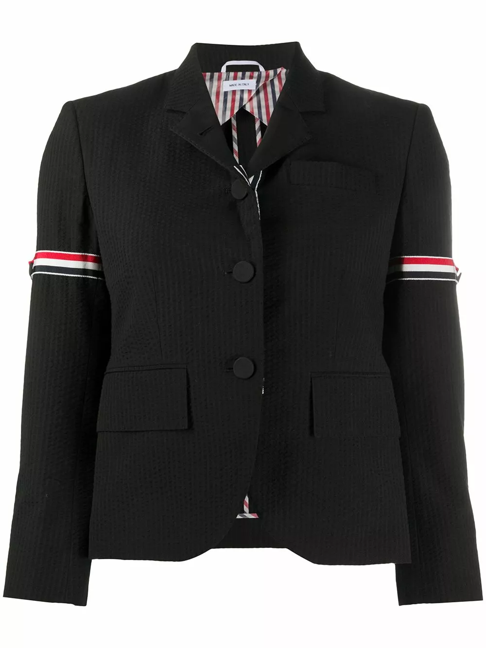 Add a sophisticated touch to your look. This Thom Browne blazer refuses to let your outerwear be an afterthought. Instead, it’s the focal point of your whole outfit.Â