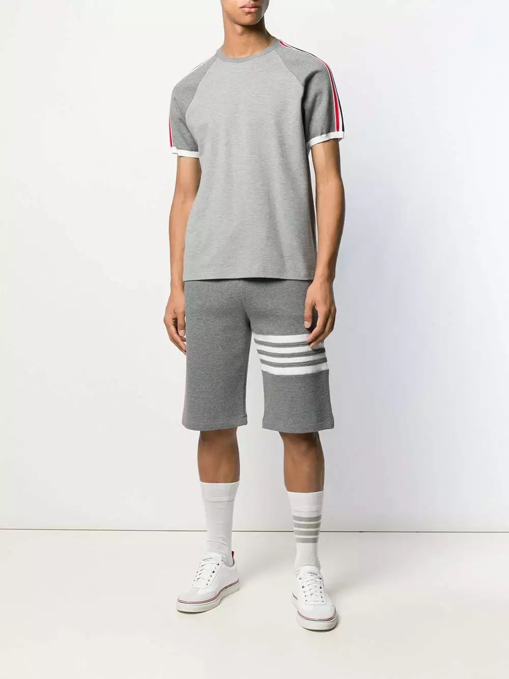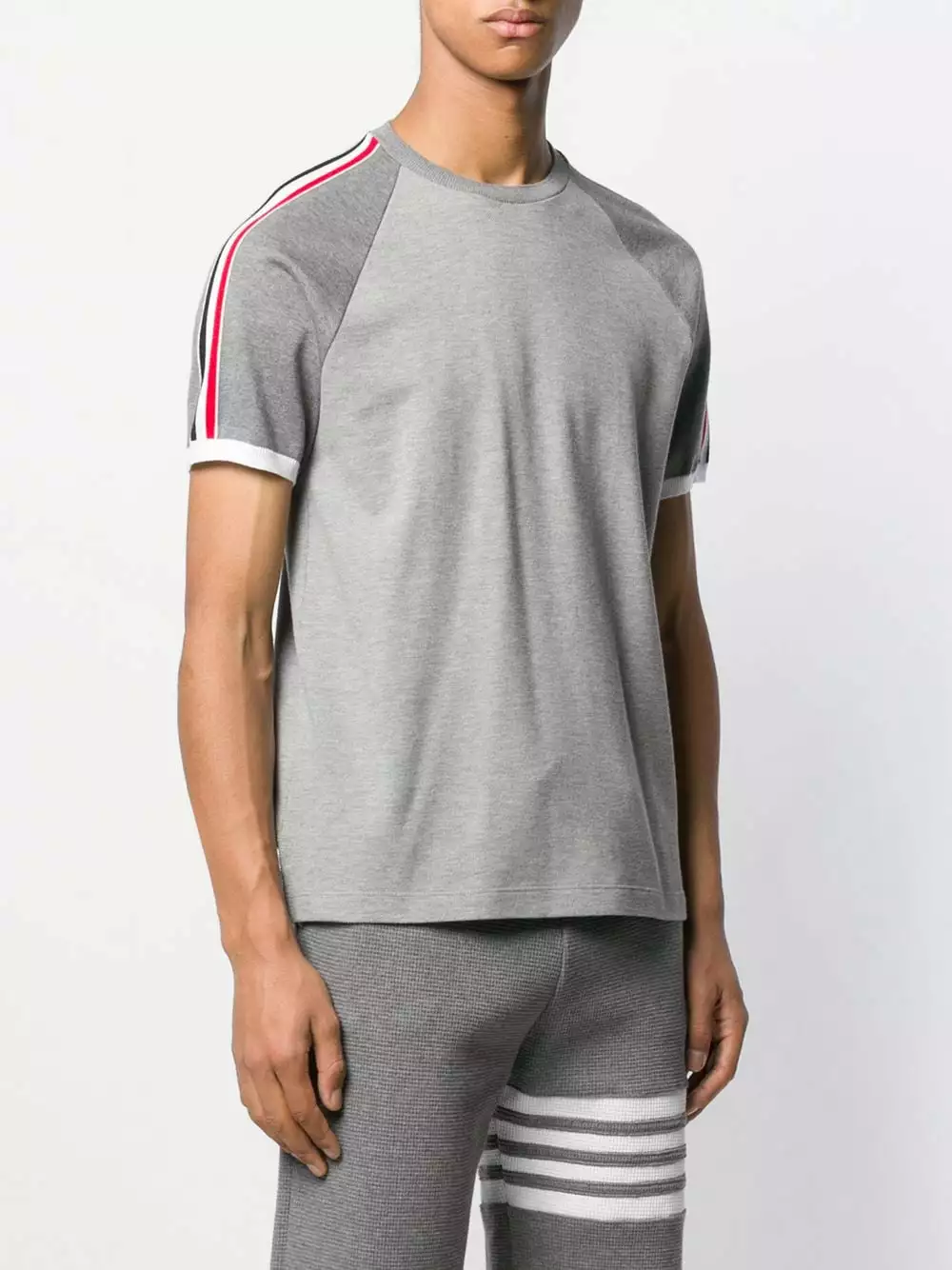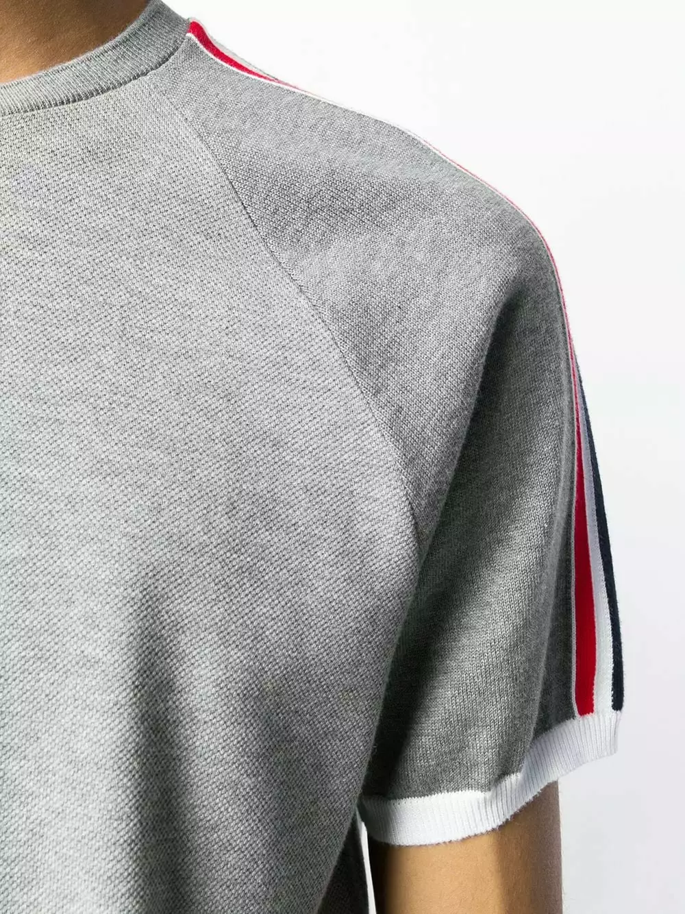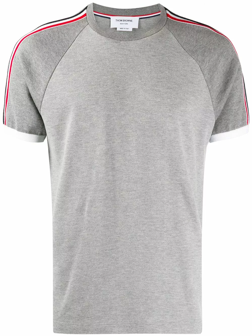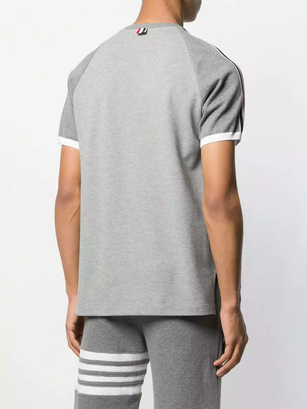 A lineup of investment pieces designed to withstand the test of time, Thom Browne’s Spring/Summer 2020 collection continues to blur the lines between refined tailoring and contemporary sportswear as seen in this cotton Piqué Short Raglan Sleeve T-shirt. Featuring a round neck, short raglan sleeves, a straight hem and a Rwb stripe detail.