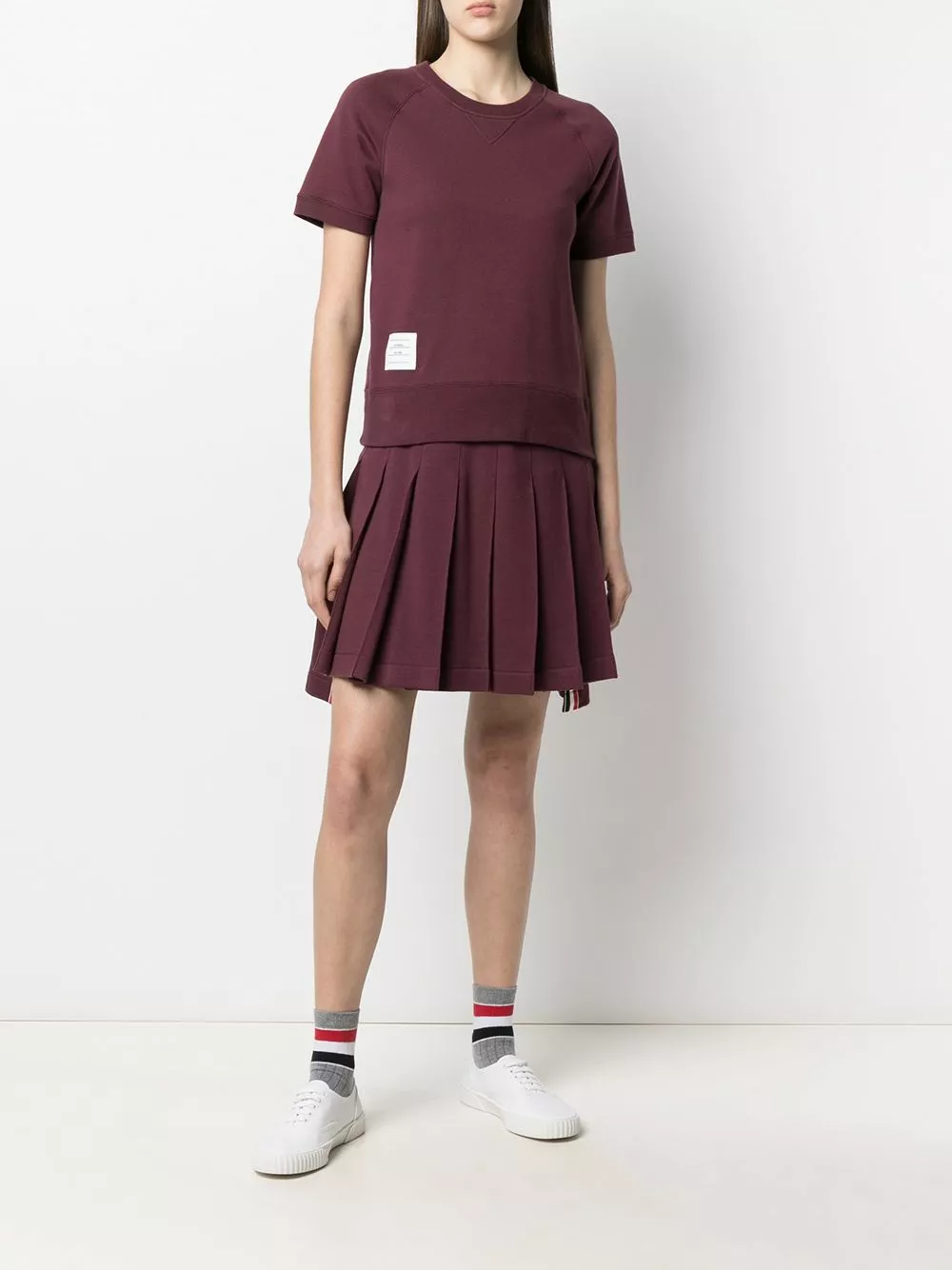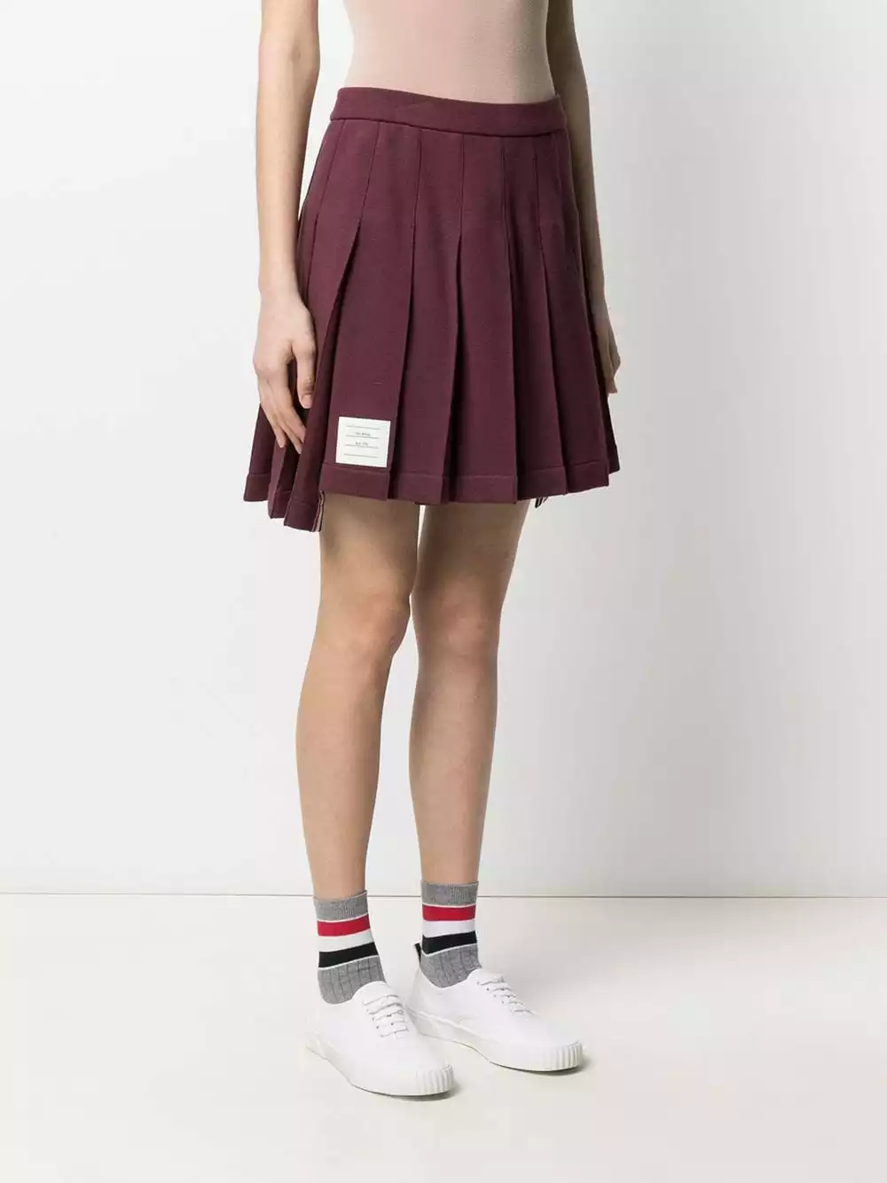 There’s no such thing as too much Thom Browne, just the right amount. Crafted from cotton, this pleated miniskirt will have you exuding the kind of collegiate vibes that the designer is renowned for. Say yes pleats.