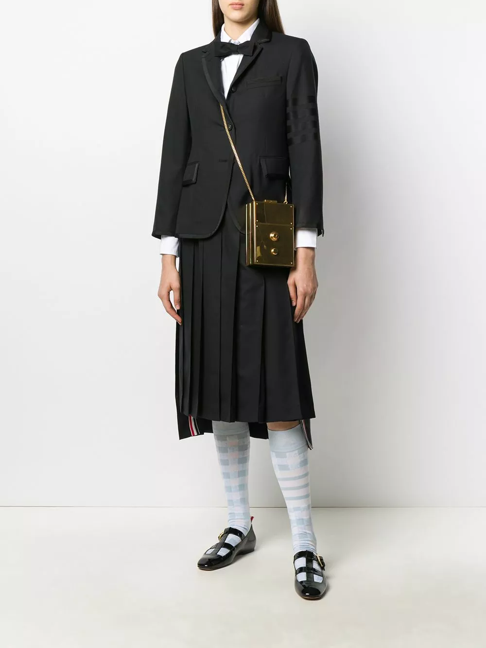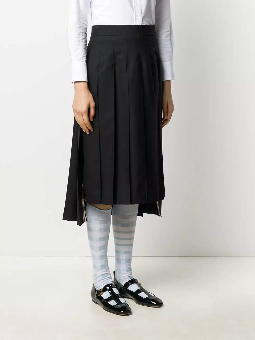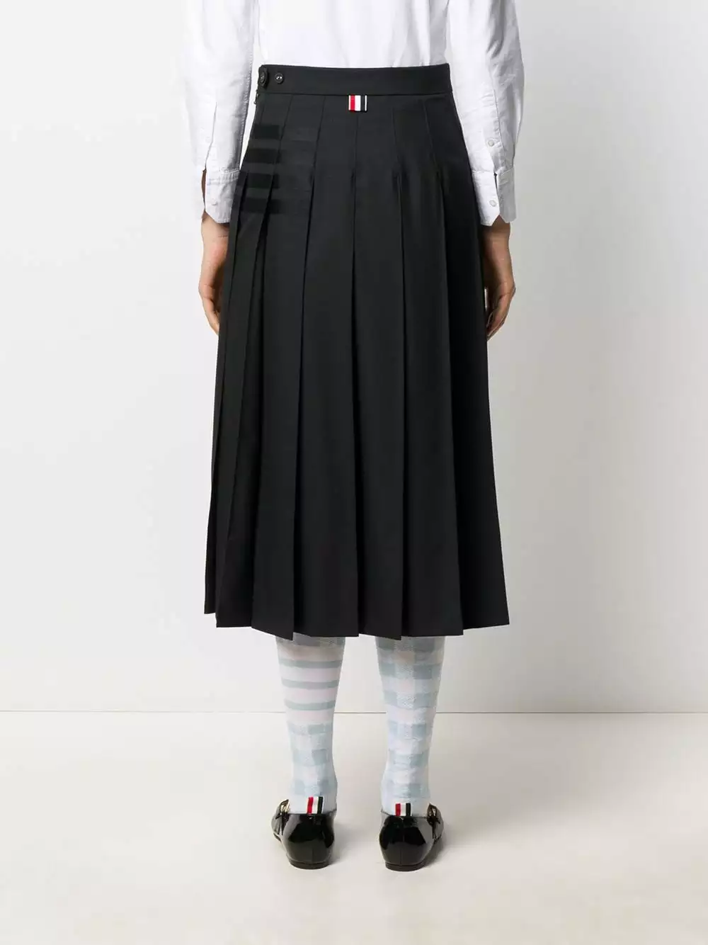 Saved by the bell! This grown-up, pleated school skirt will fulfil all your fashion fantasies; with signature tricolour stripe detailing to add that final Thom Browne flourish. What’s not to love?