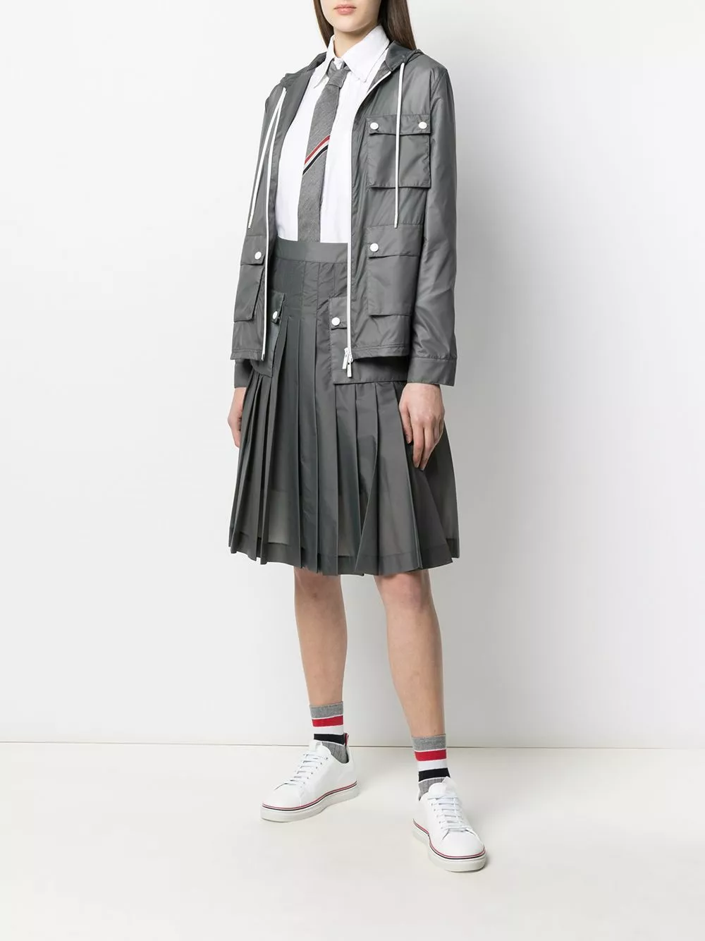 There’s nothing like a perfectly pleated skirt to make it look like you’re put together, right? Well, even if you’re not at all (like most of us), it’s worth giving this mid-length grey one by Thom Browne a go. Your boss is already convinced.
