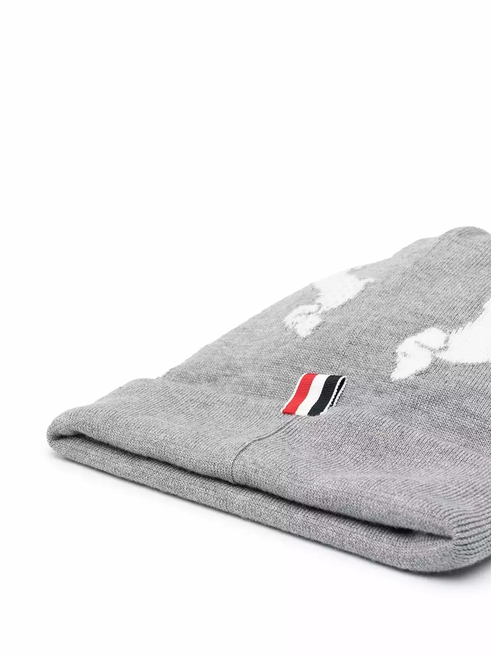 A key Thom Browne motif, Hector appears throughout the brand’s collections. He can be seen in an all-over intarsia-knit design on this merino wool beanie.