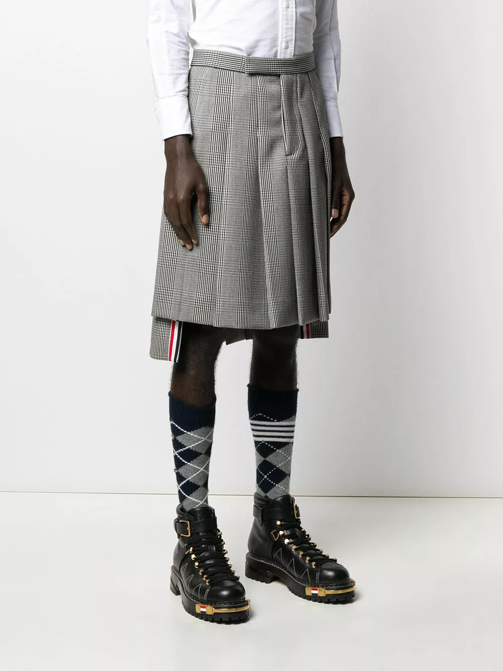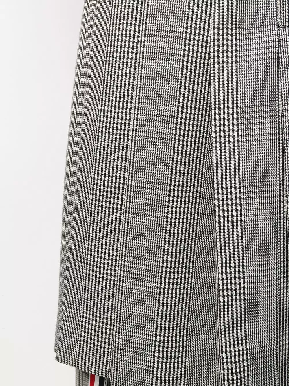Why wear trousers when you can wear this skirt? Crafted from black and white wool, this knee-length pleated skirt from Thom Browne showcases a cavalry twill design. Dare to rock it. Featuring a concealed fastening, a pleated design, a high low hem and a signature striped detail.