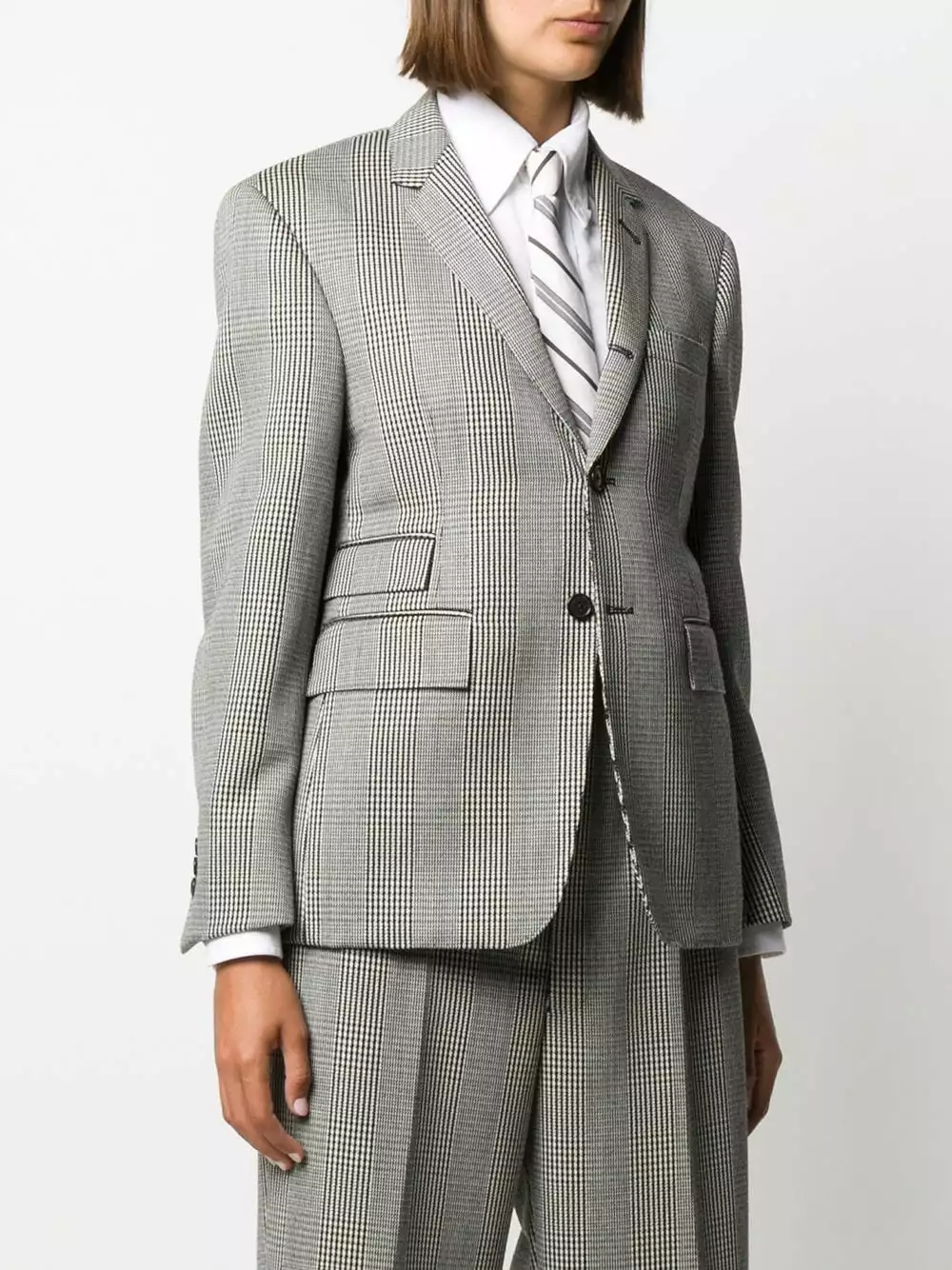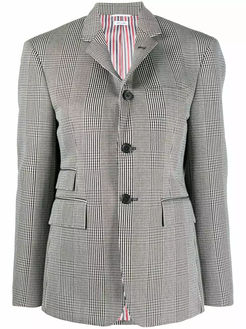 Checked with a Prince of Wales check pattern? This Thom Browne jacket ticks every box. The two of you will be inseparable. Featuring notched lapels, a houndstooth pattern, a check pattern, a broad welt chest pocket, long sleeves, a front button fastening, front flap pockets and a signature grosgrain loop tab.
