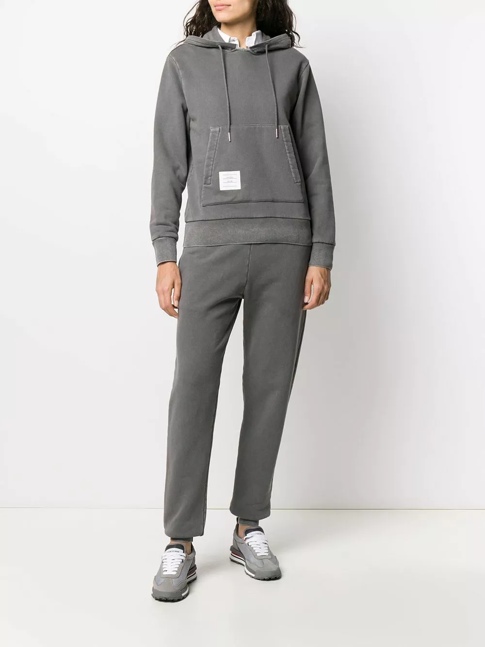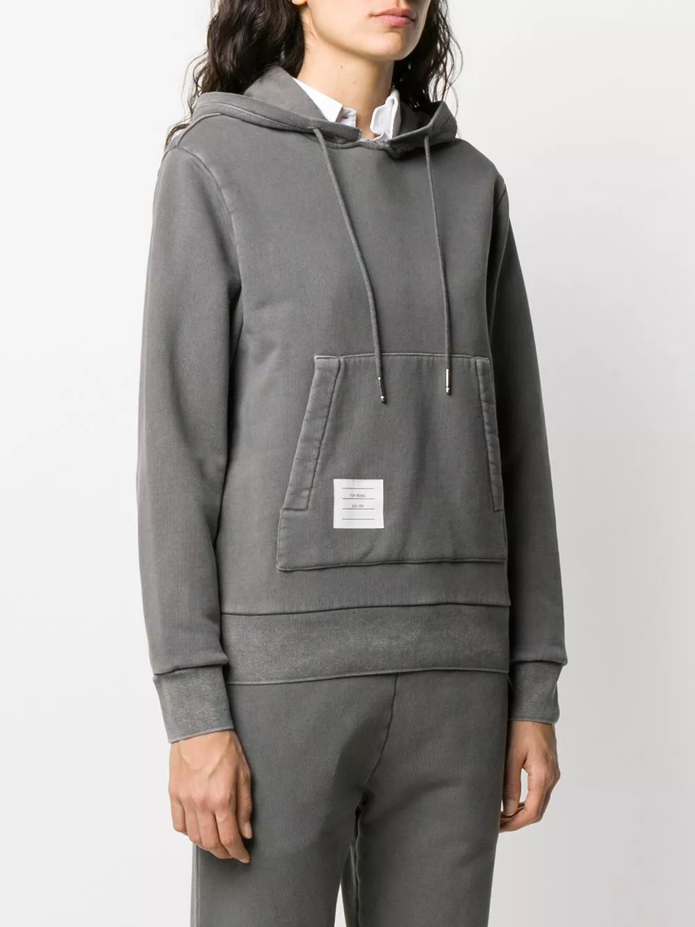 Looking for that piece that you pull on at every opportunity possible? Thom Browne has got your back…and your hoodie. This logo-patch piece puts all others in the shade. Featuring a hood with drawstring tie fastenings, a distressed detail, dropped shoulders, long sleeves, a relaxed fit, an open front pocket, a front logo patch and a ribbed hem and cuffs.