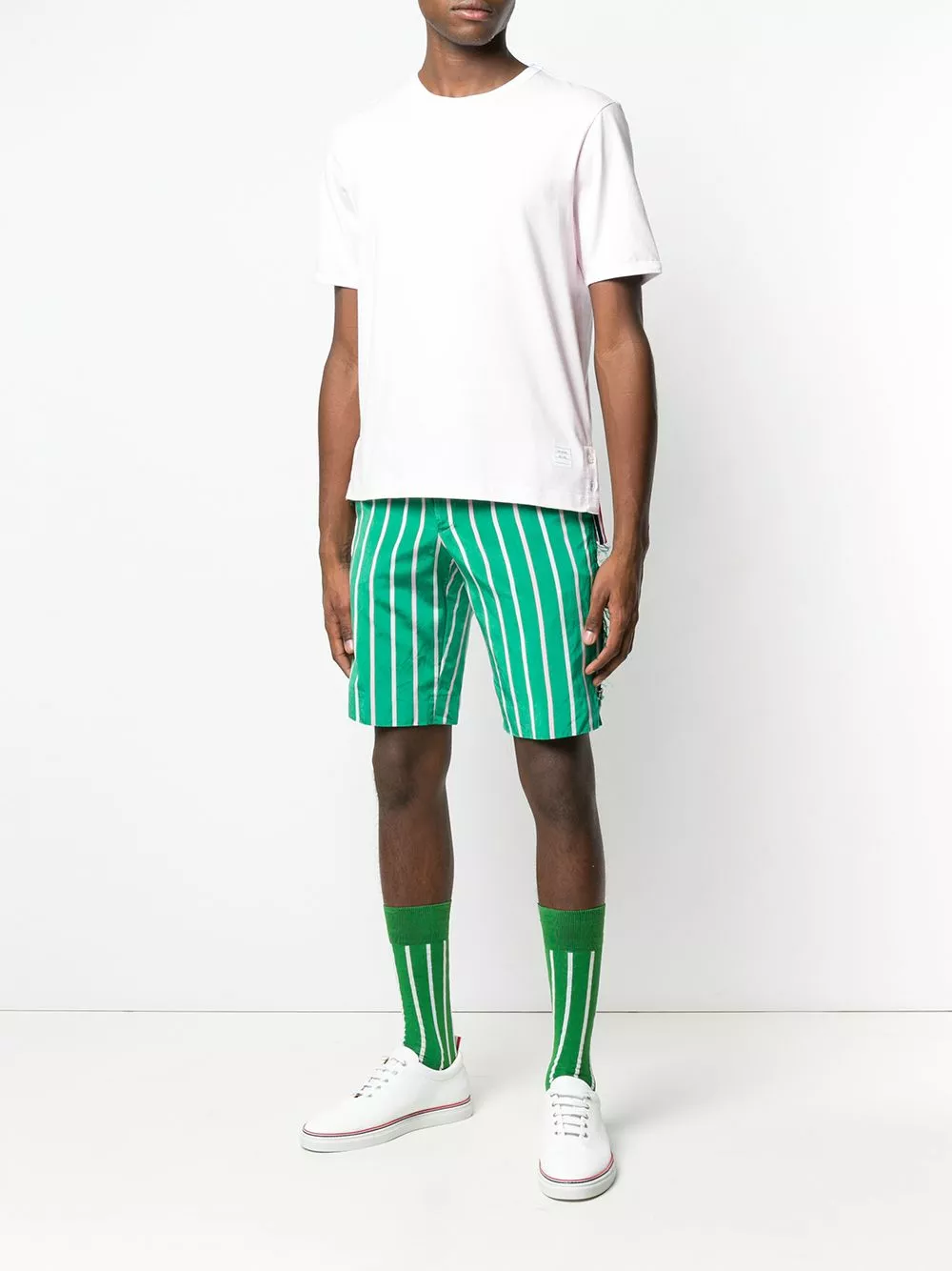 There’s always room for one more. Make it this light pink cotton T-shirt from Thom Browne, which is detailed with the signature 4-Bar tab on the rear. If there isn’t room in your wardrobe, make room.
