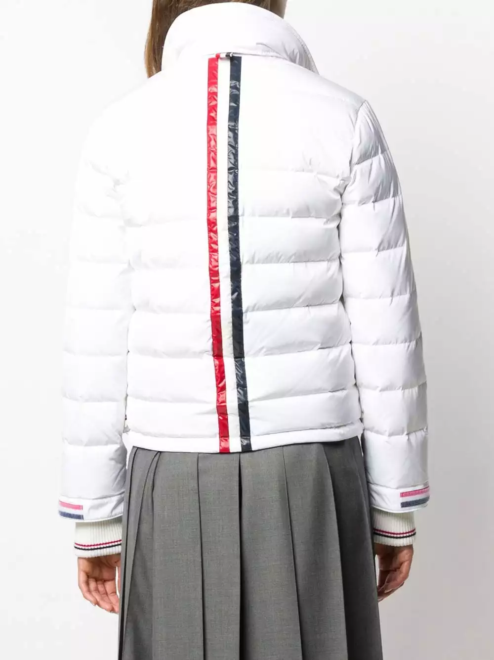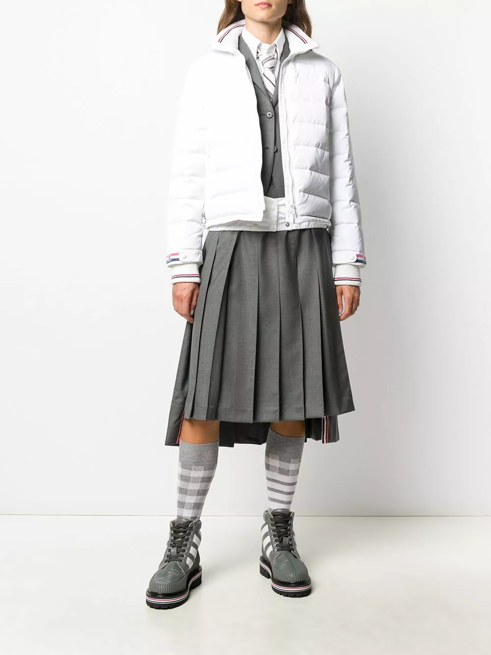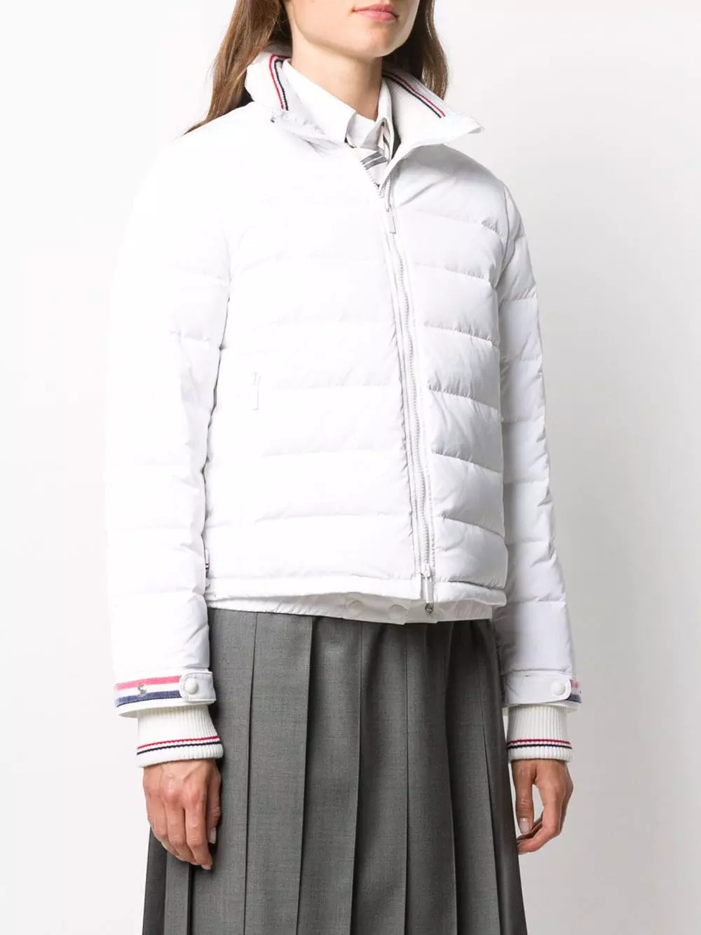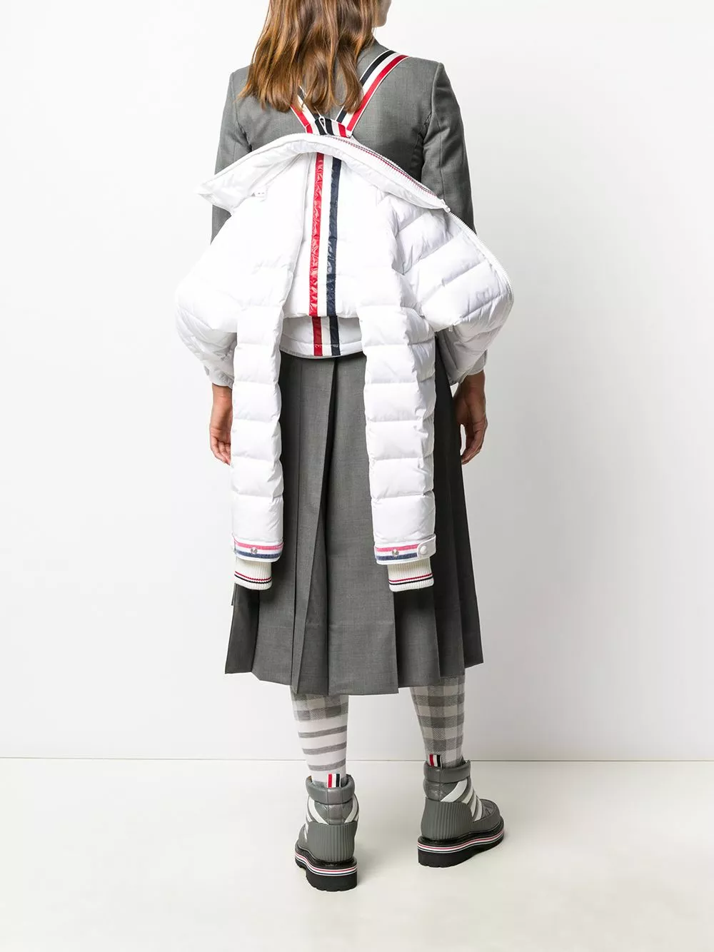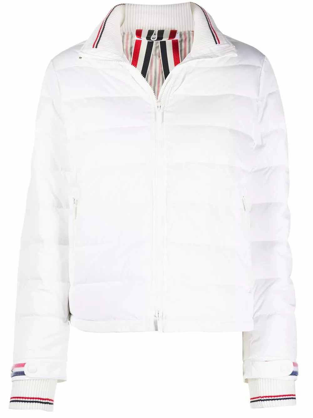 This season’s must-have piece – the padded coat. This piece from Thom Browne features a padded design, quilted finish, signature three-stripe logo, elasticated cuffs, adjustable shoulder straps, front zip fastening and down-feather filling. What’s not to love?