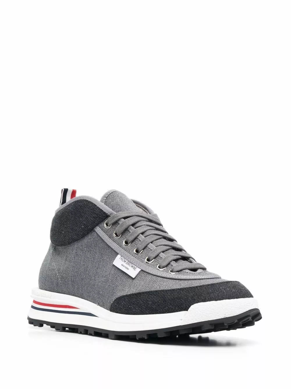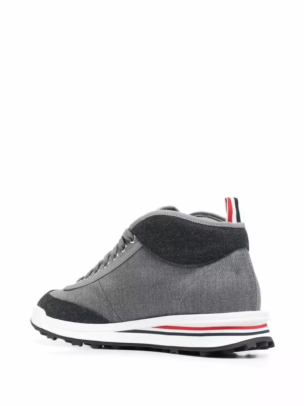 Detailed with the brand’s signature RWB logo stripe, this pair of high top Rugby sneakers is part of Thom Browne’s AW21 collection. Showcasing the label’s expert Italian construction, they feature a round toe and logo tab detail to one side.