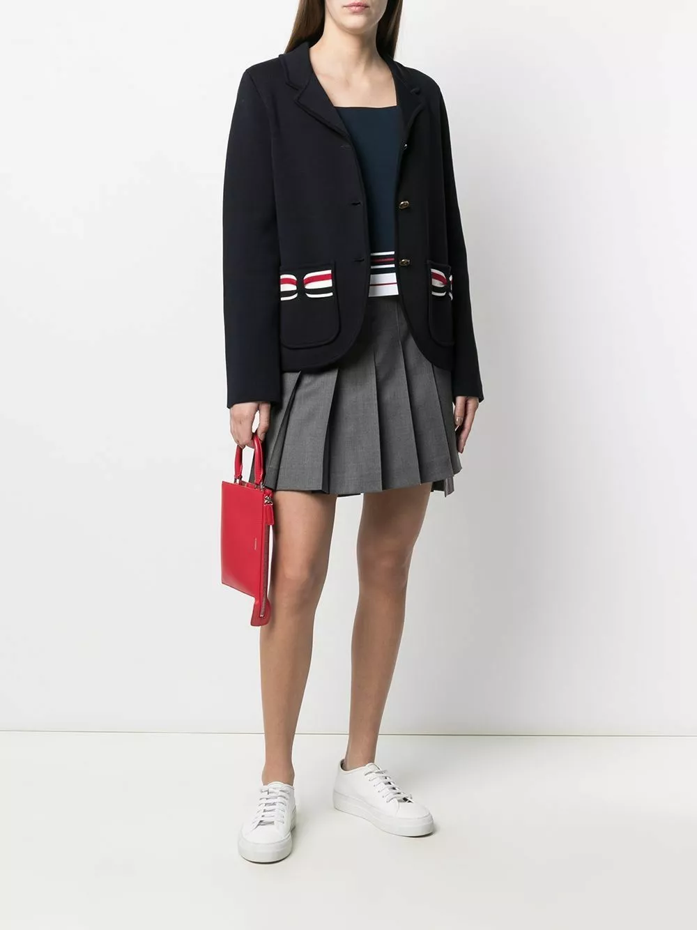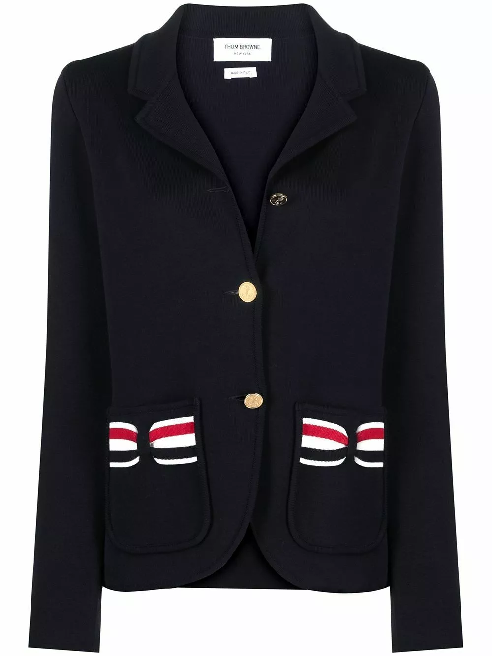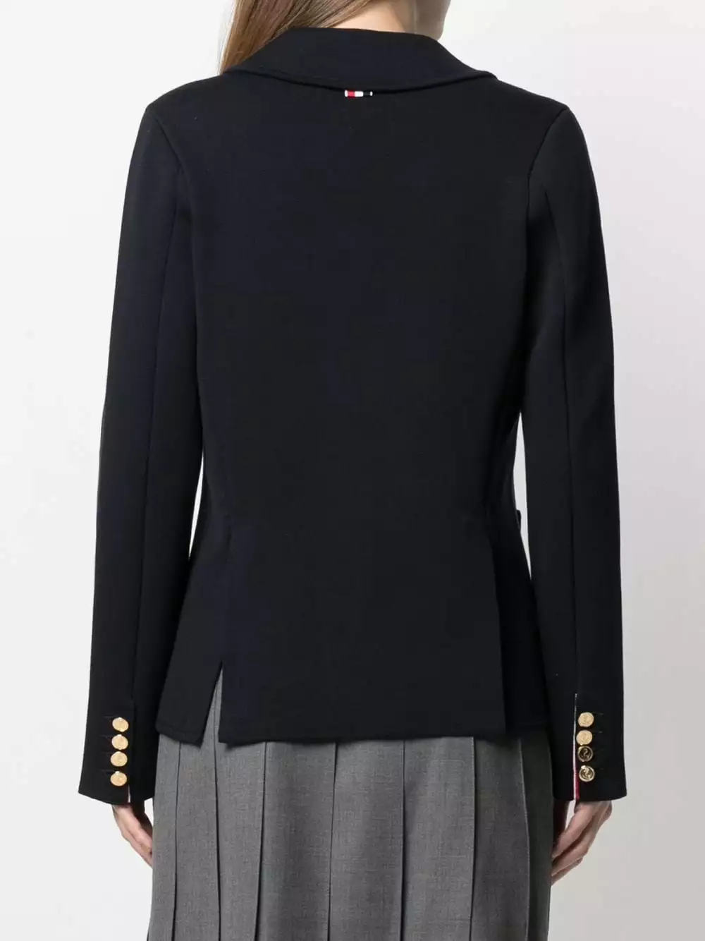 Some things just feel right. So stop ignoring your gut feeling and add this navy blue Thom Browne jacket to your collection. You’re right.