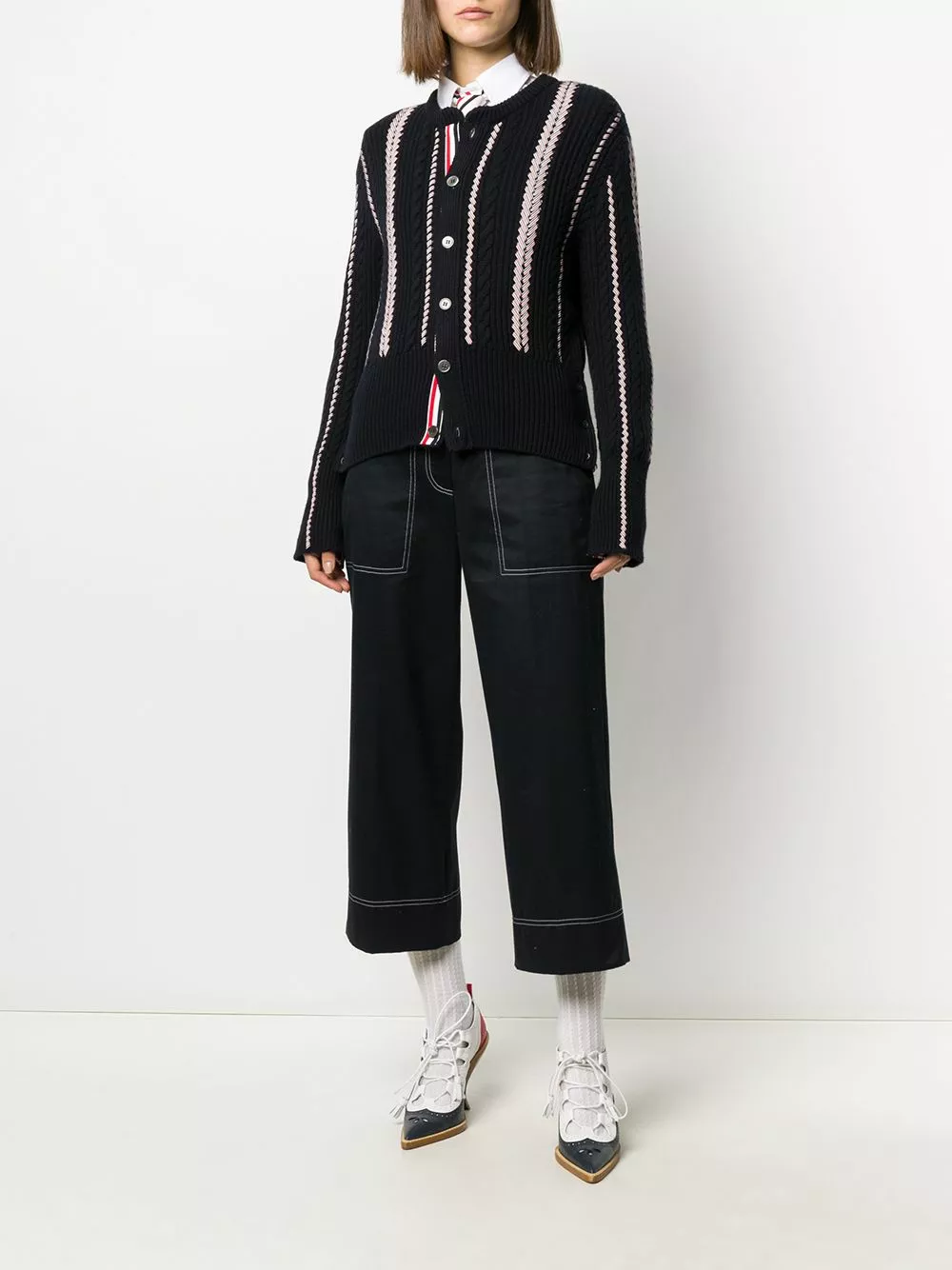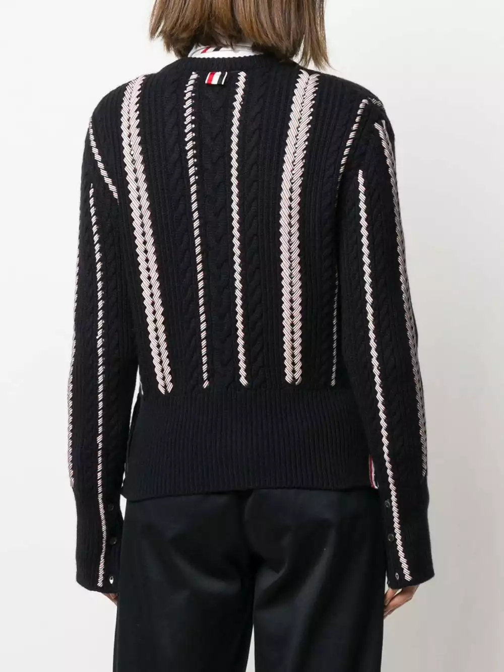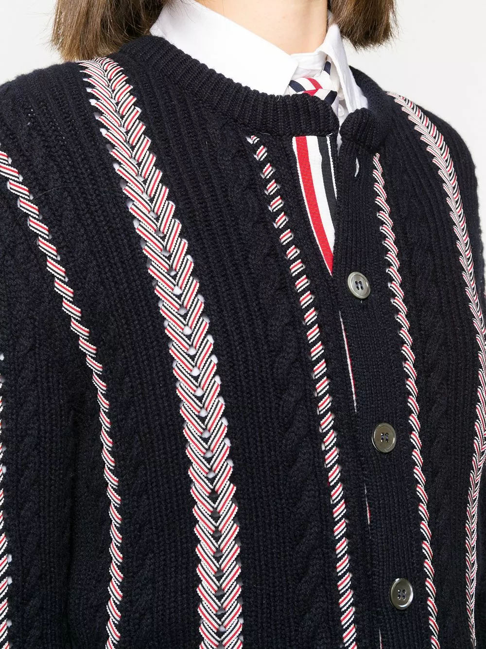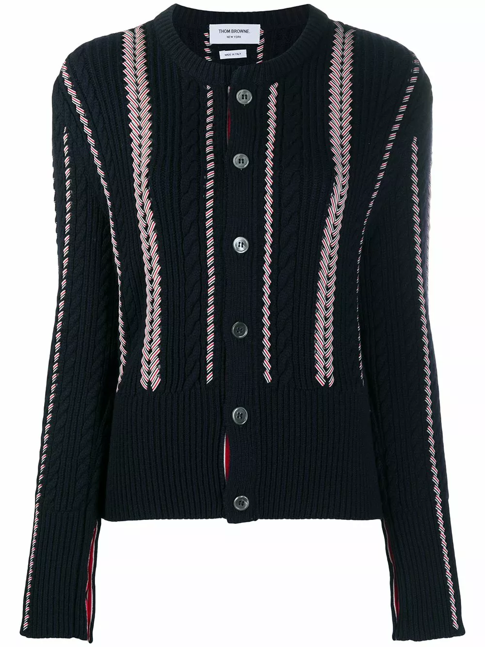 It’s time to give a twist to your knitwear collection. Boasting an RWB-cable knit, this Thom Browne cardigan is the perfect choice. Make room for it.