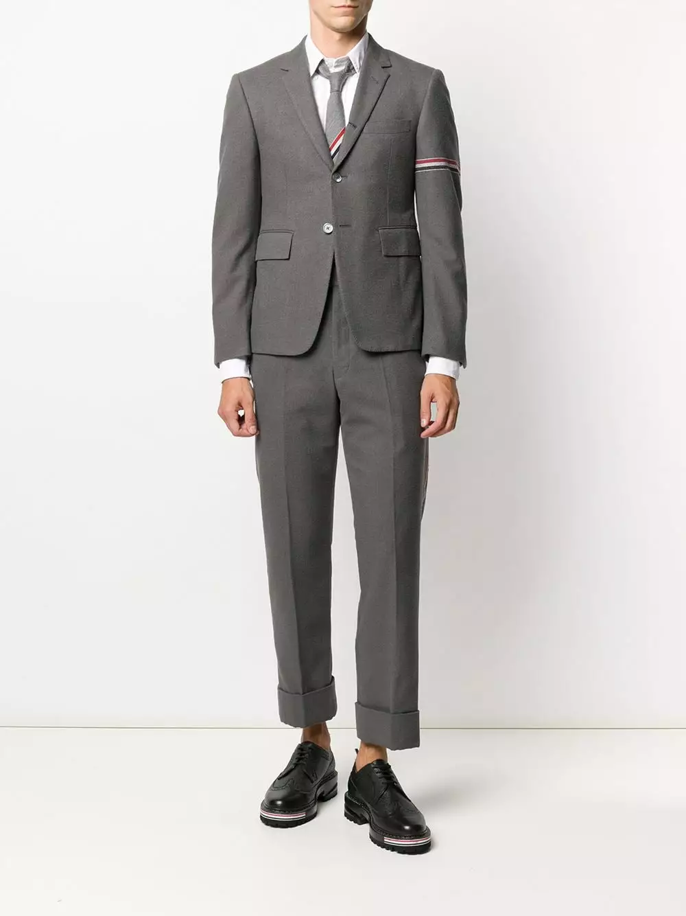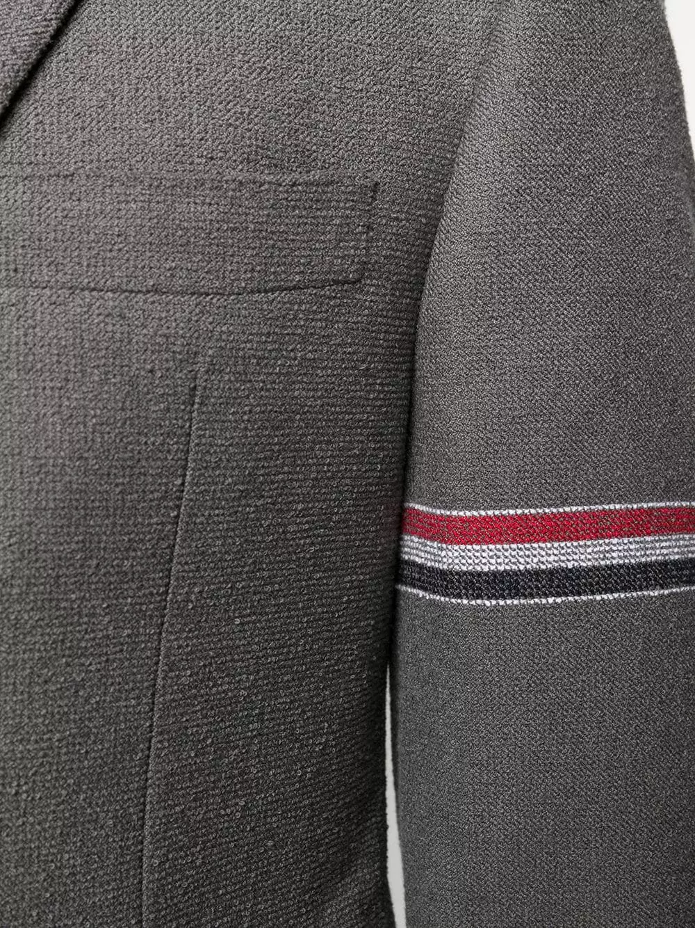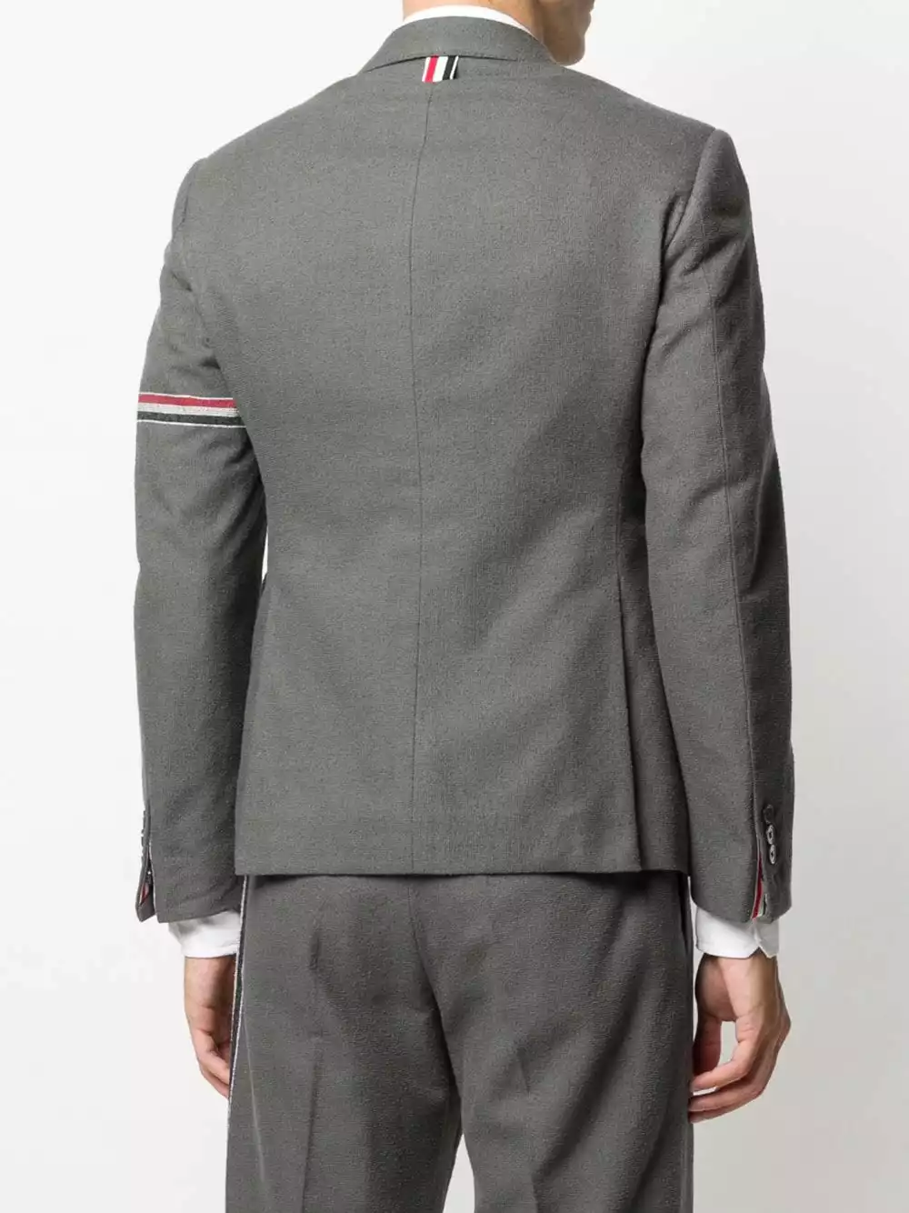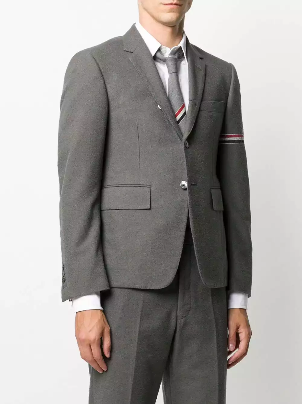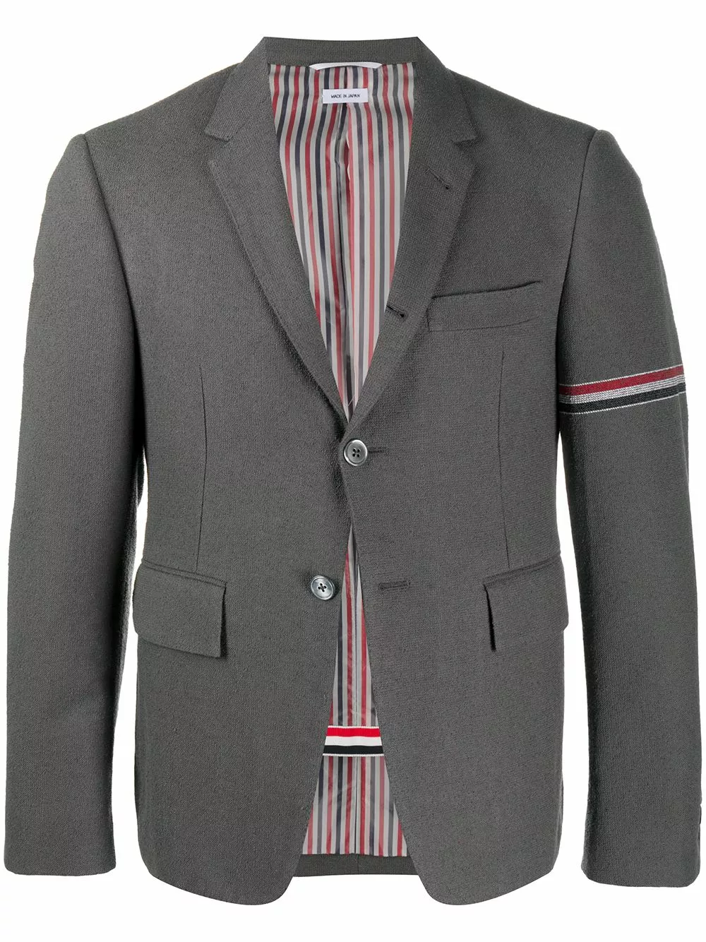Classic and timeless. Every wardrobe deserves a trusty blazer, so why not make sure you have this RWB engineered blazer from Thom Browne. Crafted from a dark-grey cotton blend, the tailored fit is finished with a signature RWB logo stripe on the arm for added charm.