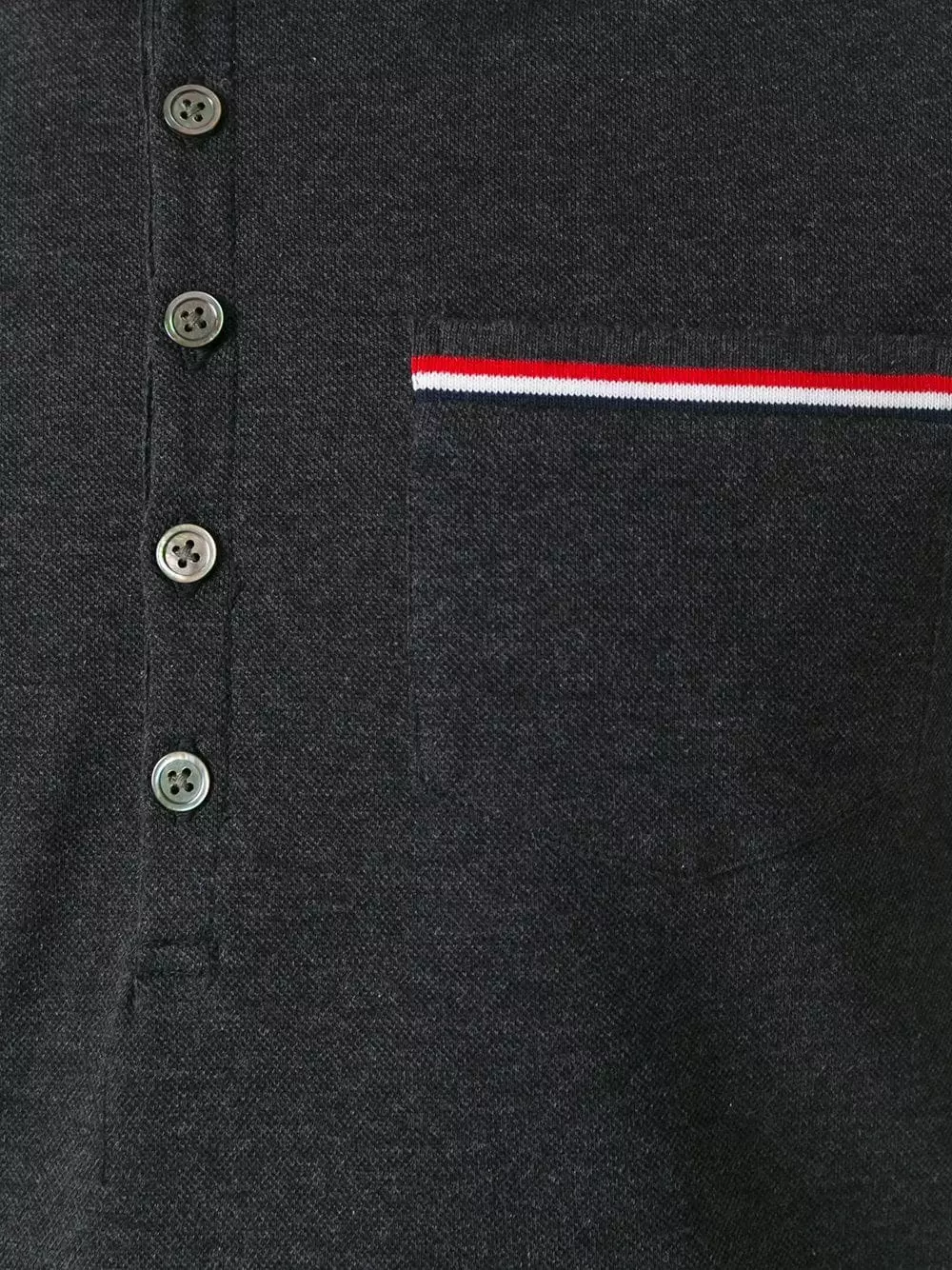 Dark Grey cotton Rwb Pocket Trim Piqué Polo from Thom Browne.