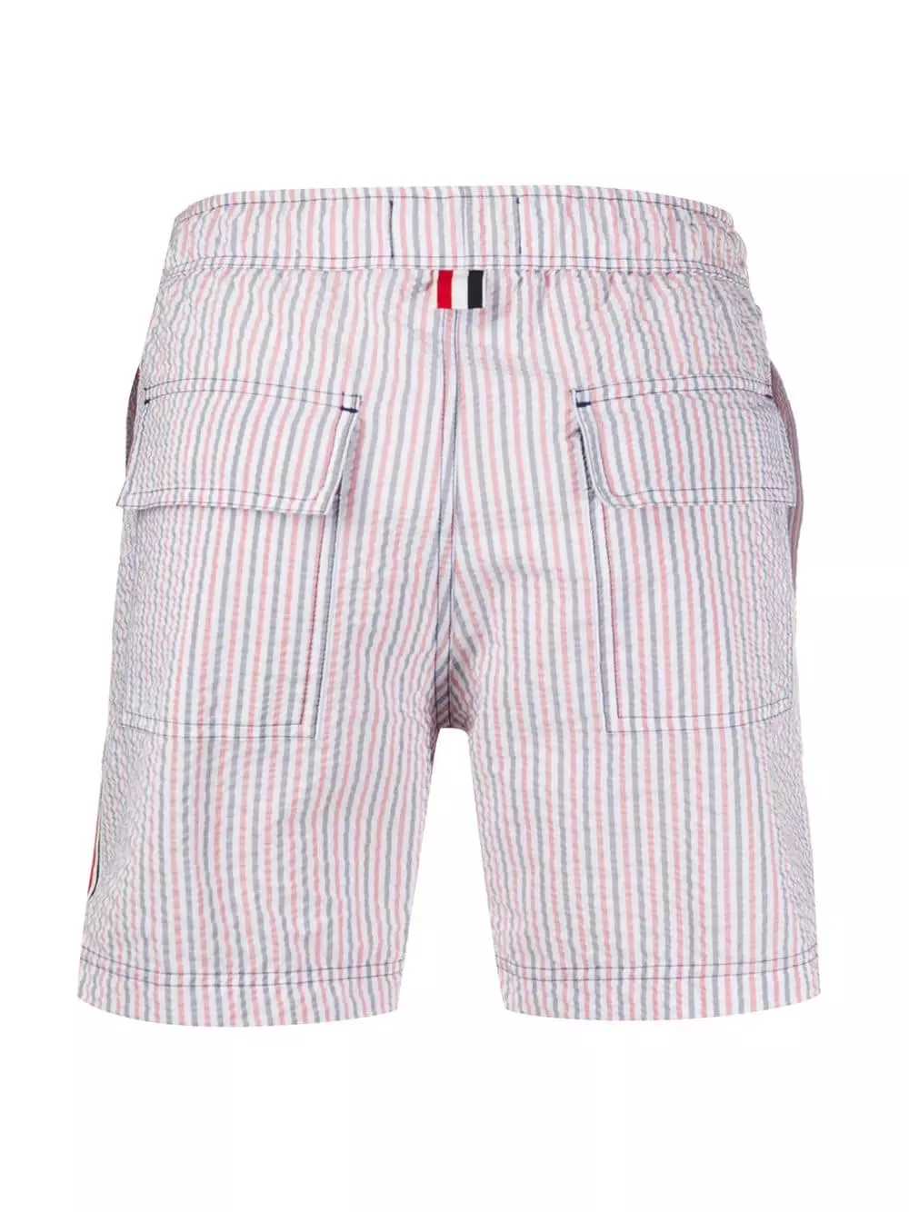 Holiday style? Thom Browne has got it covered. Introducing these RWB-stripe swim shorts.