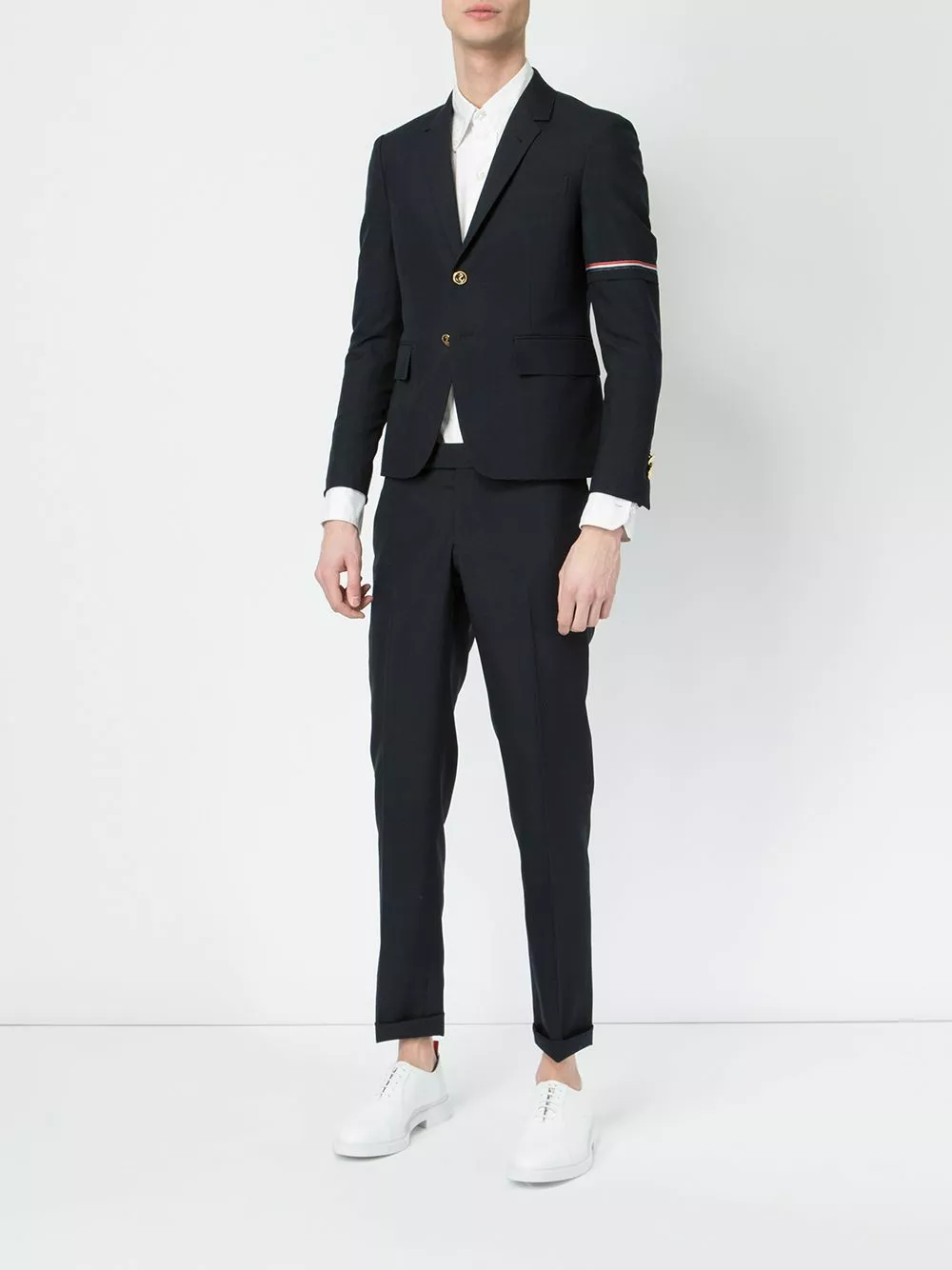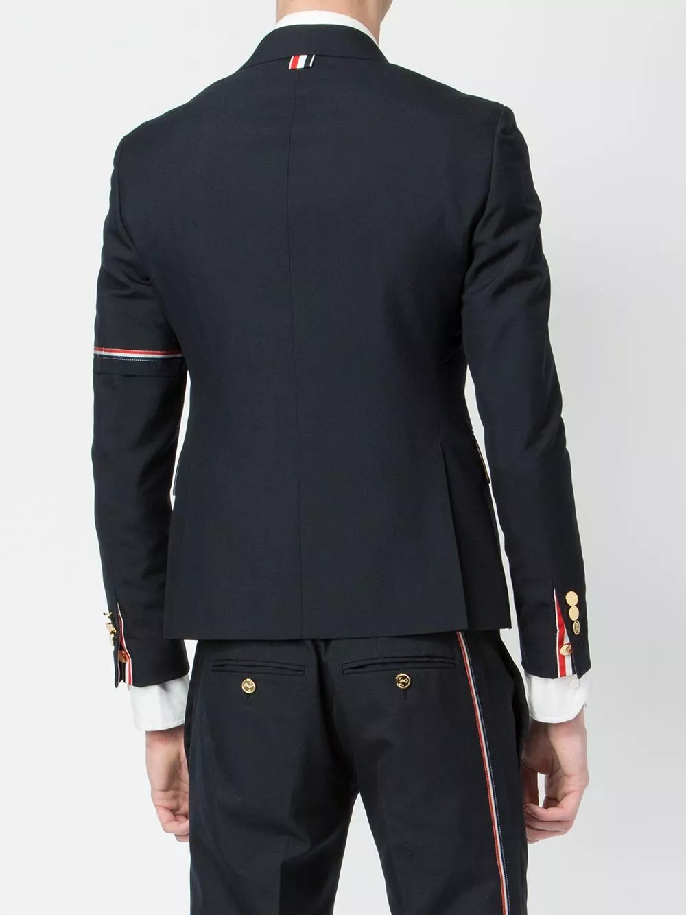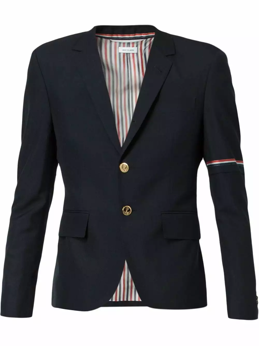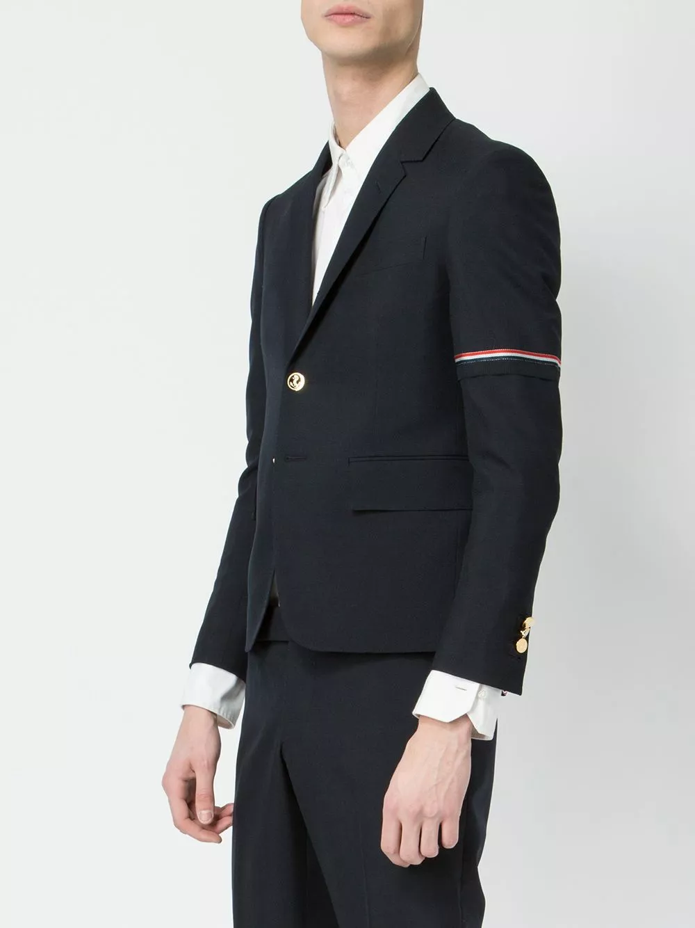 Navy wool blend Rwb Selvedge Armband Sport Coat from Thom Browne.