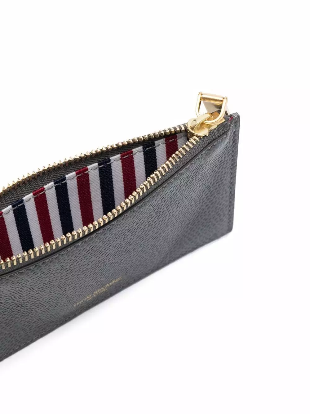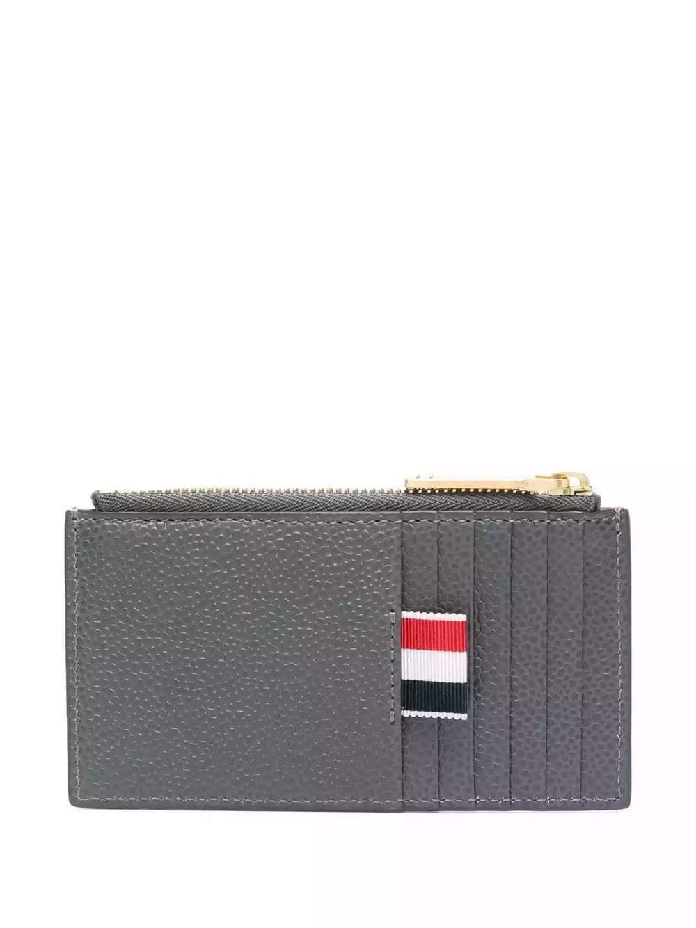 Thom Browne’s iconic RWB stripe tab is seen season after season, and the label’s accessory collection is no exception. The unmistakable theme is seen here against a leather construction, adding a branded finish to its grey-tone design.Â