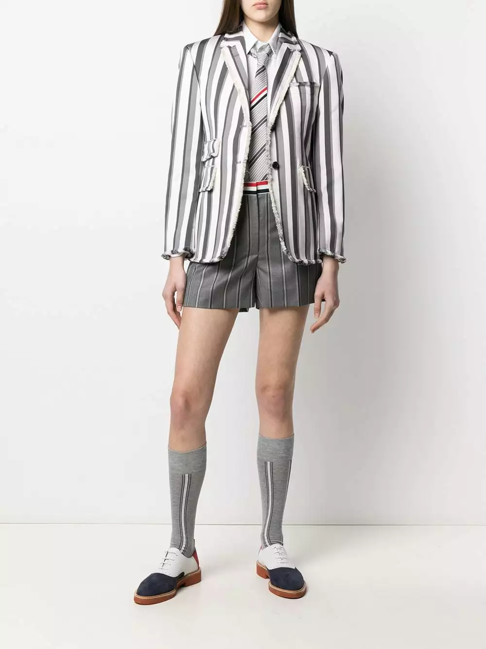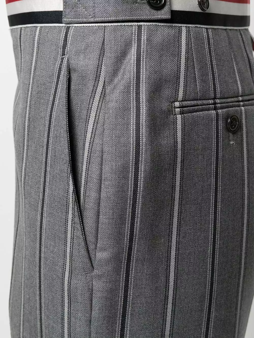 You could go on about your love for Thom Browne designs, but you’ll keep it short and sweet. Especially when it comes down to the impeccile tailoring of details such as a high waist and rear welt pockets. You’ve earnt these tricolour stripes.