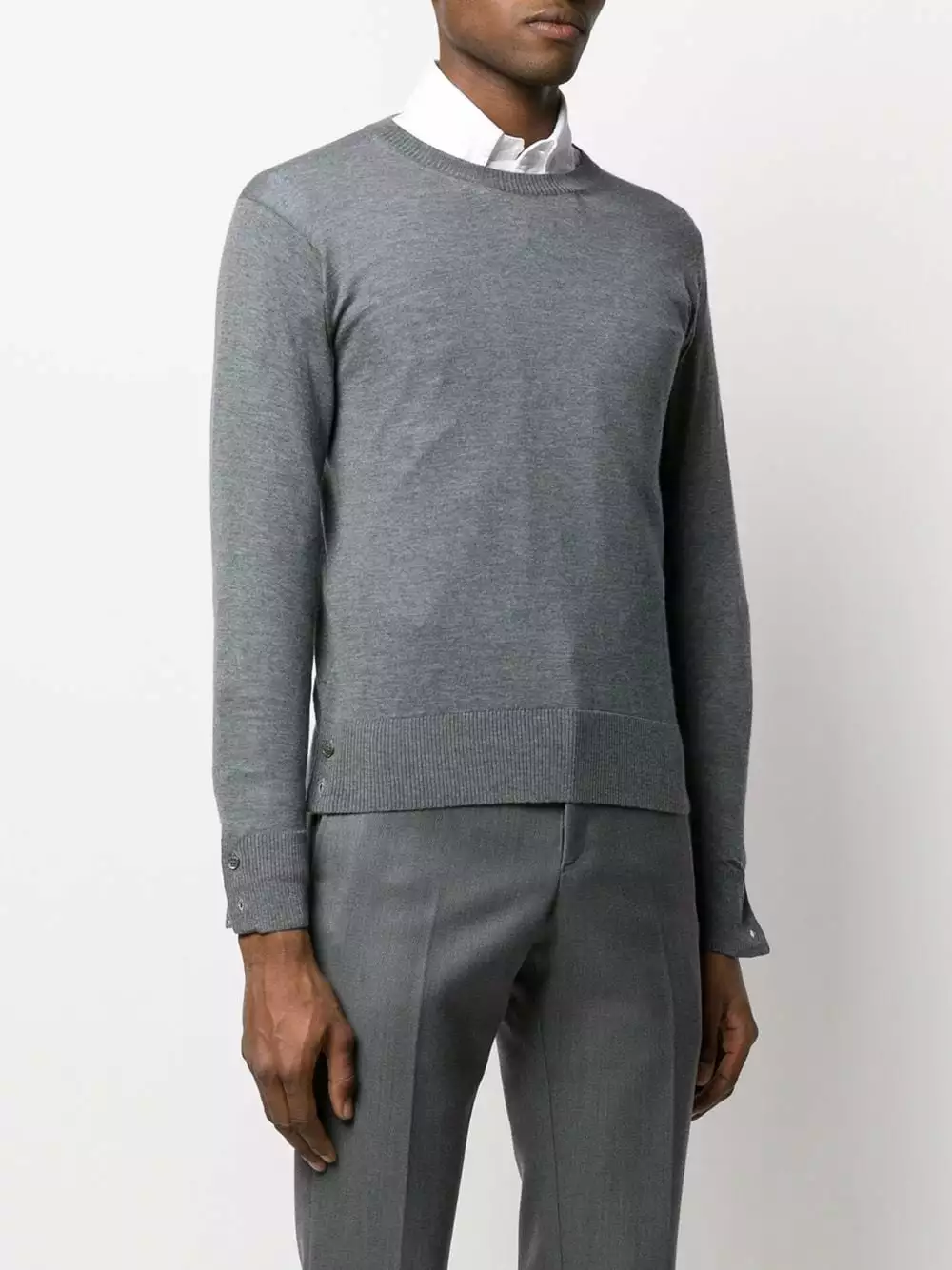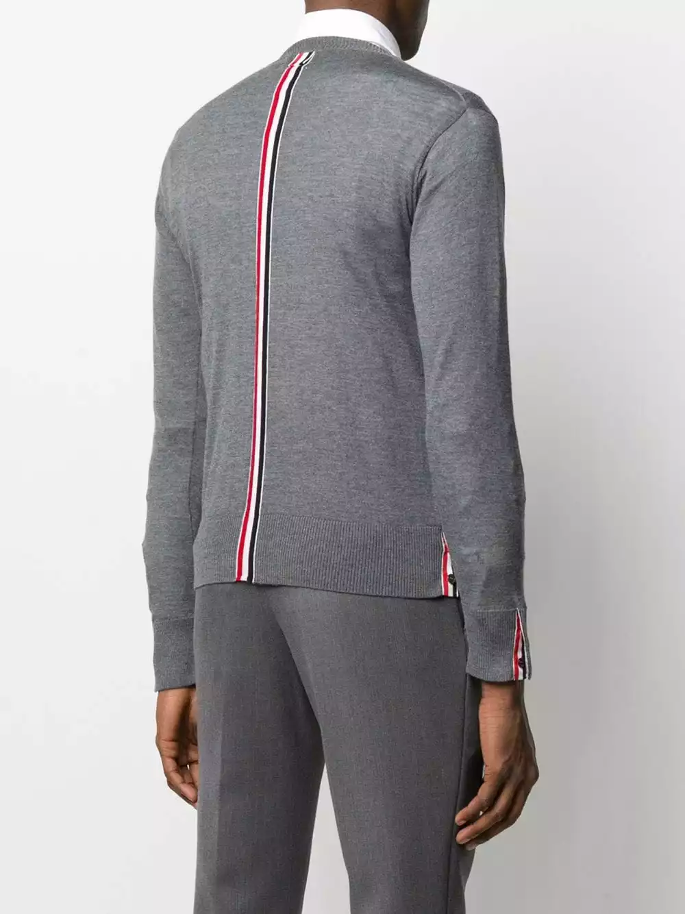 How hard is it to find a simple layering piece? It’s surprisingly difficult to find a quality piece like this merino wool RWB stripe jumper from Thom Browne. So when you finally do come across it, put it in your basket immediately! Featuring a ribbed crew neck, a ribbed hem and cuffs, long sleeves, a fitted design and RWB stripe intarsia.