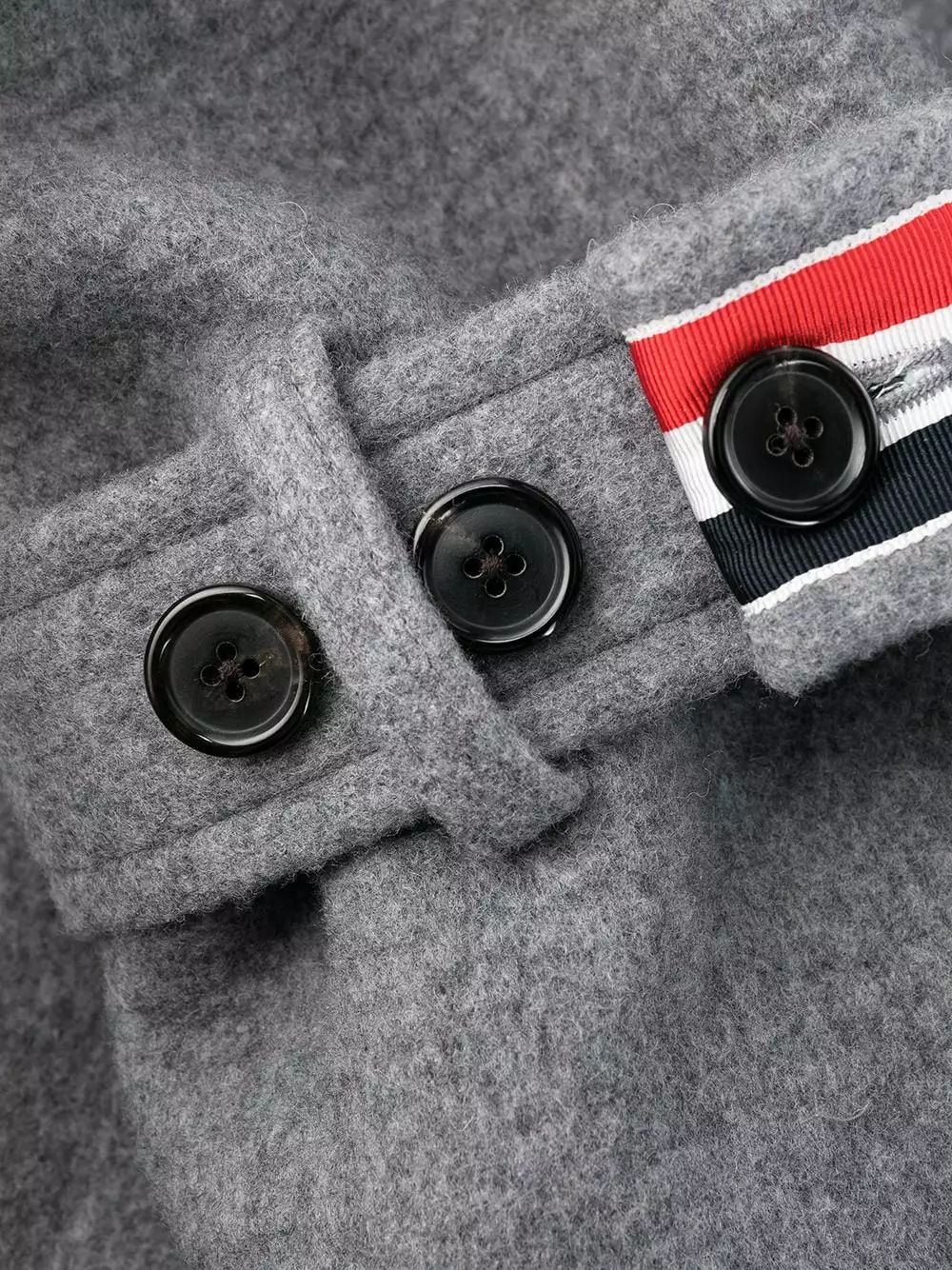 We know it’s not easy to depend on the forecast. So, why not rely on Thom Browne? Constructed from a soft wool and cashmere blend and boasting the iconic RWB stripe, this long duffle coat will answer to your morning doubts.