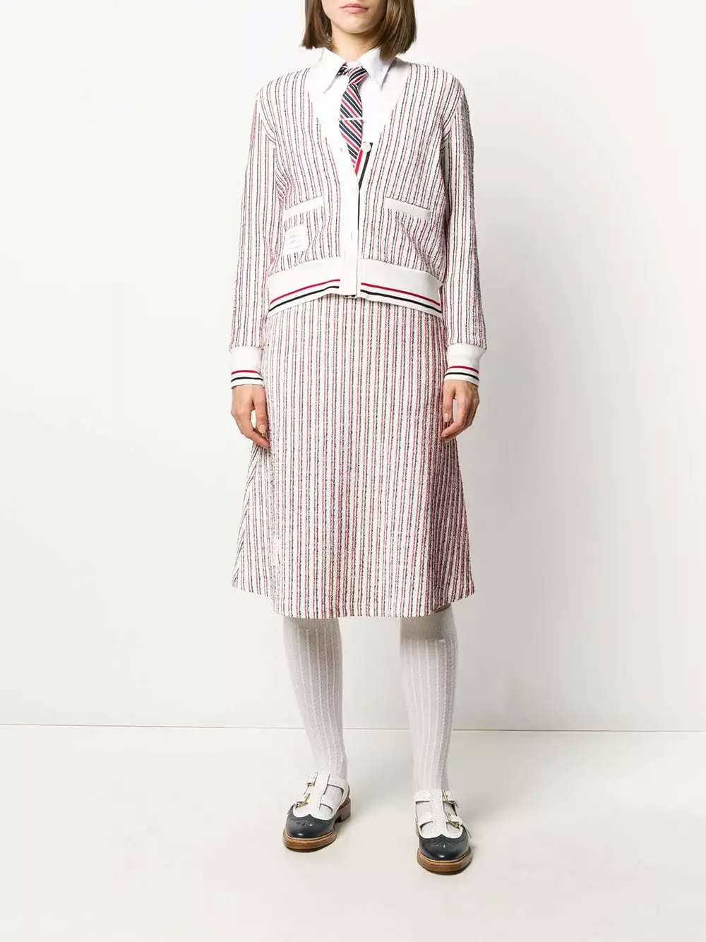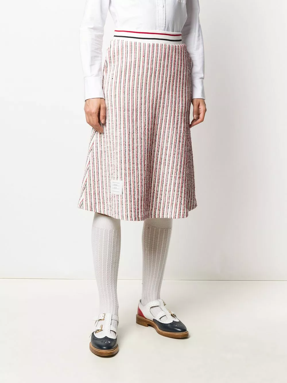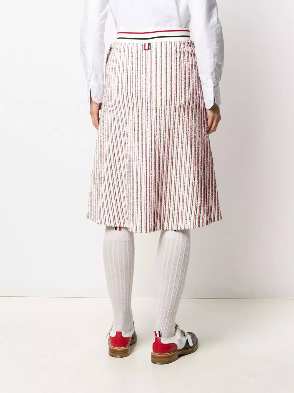 Stand-out style? It’s as easy as one…two…three. And by that we mean that it’s as easy as slipping on this RWB-stripe skirt from Thom Browne.