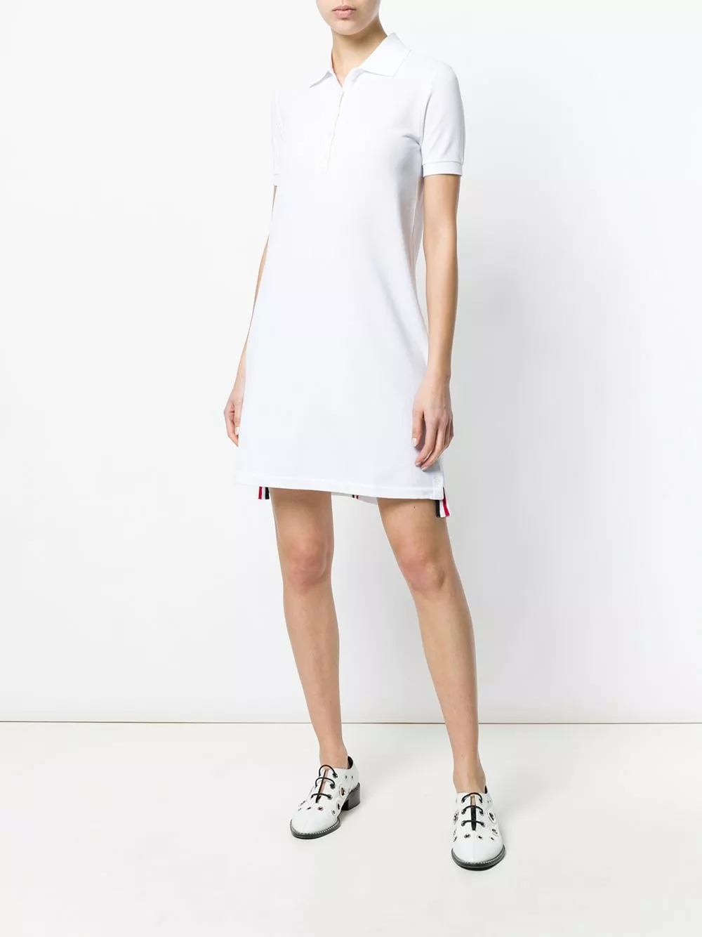 You’ve always sported smart style. Now you can serve looks with this Thom Browne polo dress, featuring the signature grosgrain loop tab detail and RWB stripe. Ace.