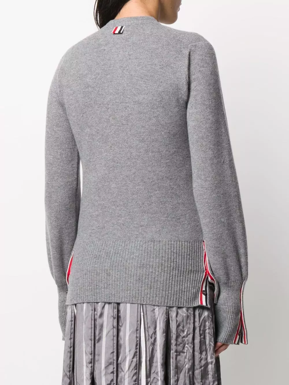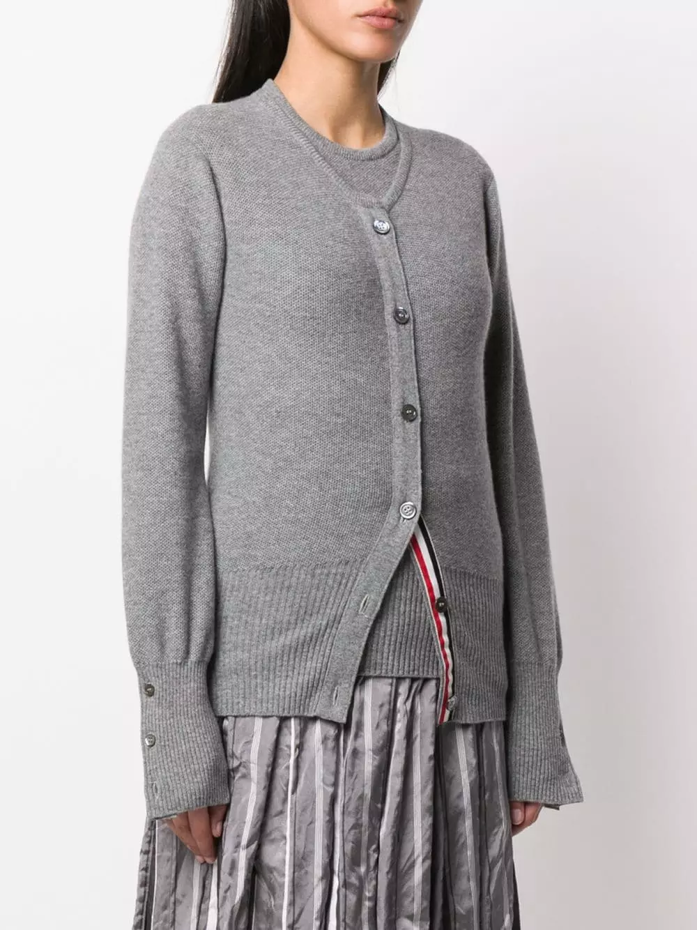 Feeling nostalgic for your old school style? Go for this RWB cashmere cardigan from Thom Browne. And this piece doesn’t even come with compulsory Maths lessons! Featuring a v-neck, a front button fastening, a relaxed fit, a ribbed hem and cuffs, long full sleeves, RWB stripes and a RWB tab.