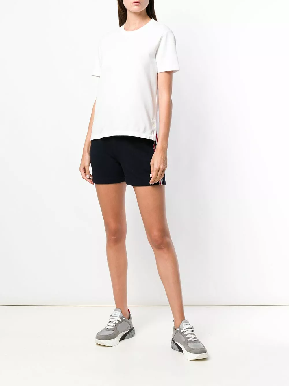 Known for the precision and attention to detail that he brings to the world of suiting, Thom Browne now turns his eye to the clothes you wear post-5pm. This white relaxed RWB stripe T-shirt is crafted from cotton and features a round neck, short sleeves, a relaxed fit and a straight hem.
