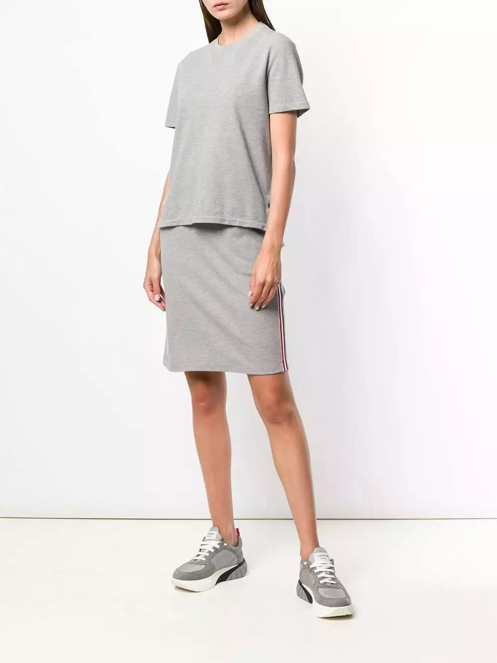 Favoured by the likes of Michelle Obama, Julianna Margulies and Janelle Monae, Thom Browne’s sophisticated sense of style is synonymous with youth, freedom and wit. This light grey relaxed fit stripe T-shirt is crafted from cotton and features a round neck, short sleeves, a straight hem and a stripe back detail.