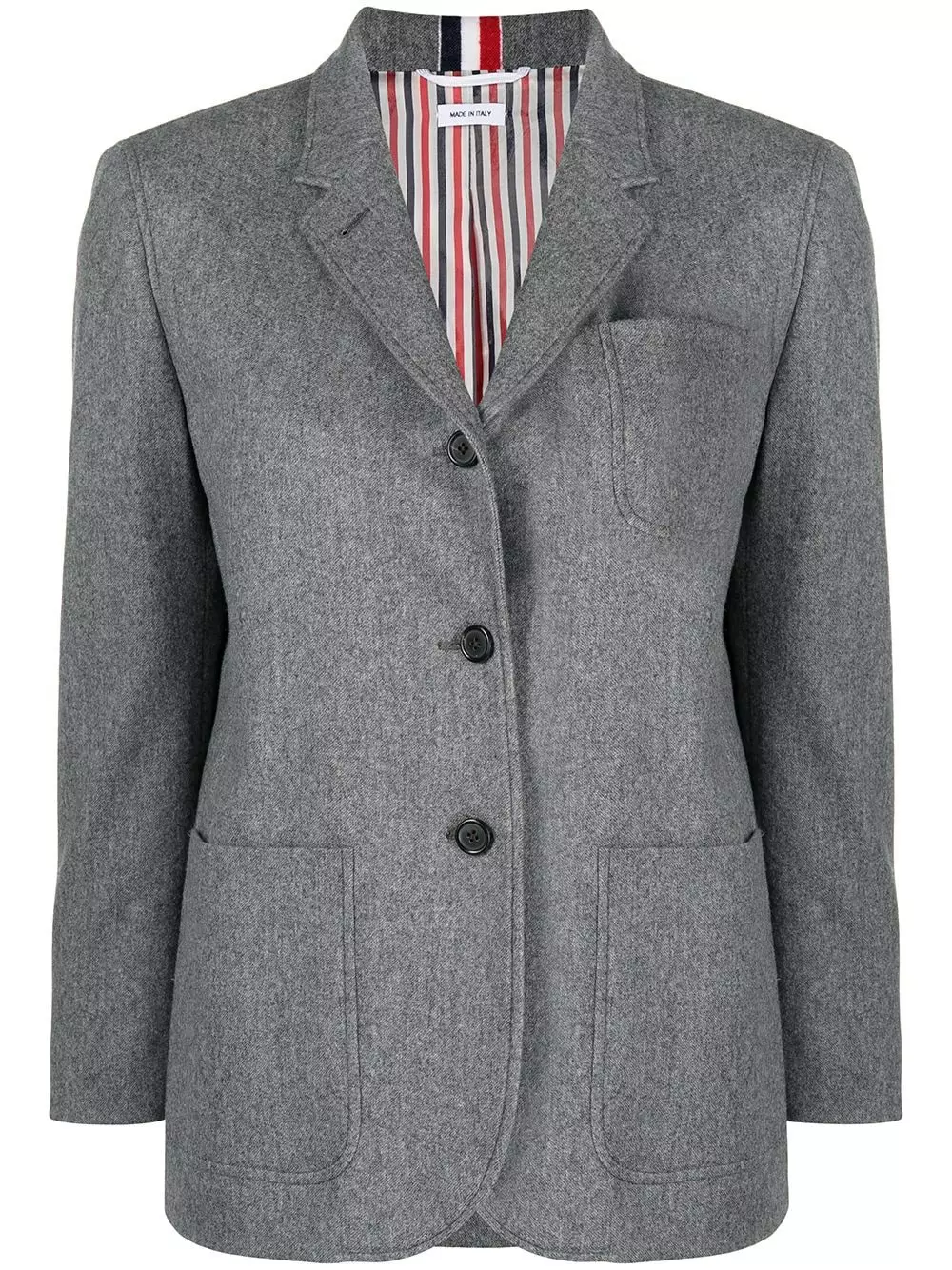 Button up in your new favourite blazer. It’s Thom Browne, of course. With impeccibly tailored notched lapels and cropped sleeve details, you’ll be overlaying your outfits in ultimate opulence.