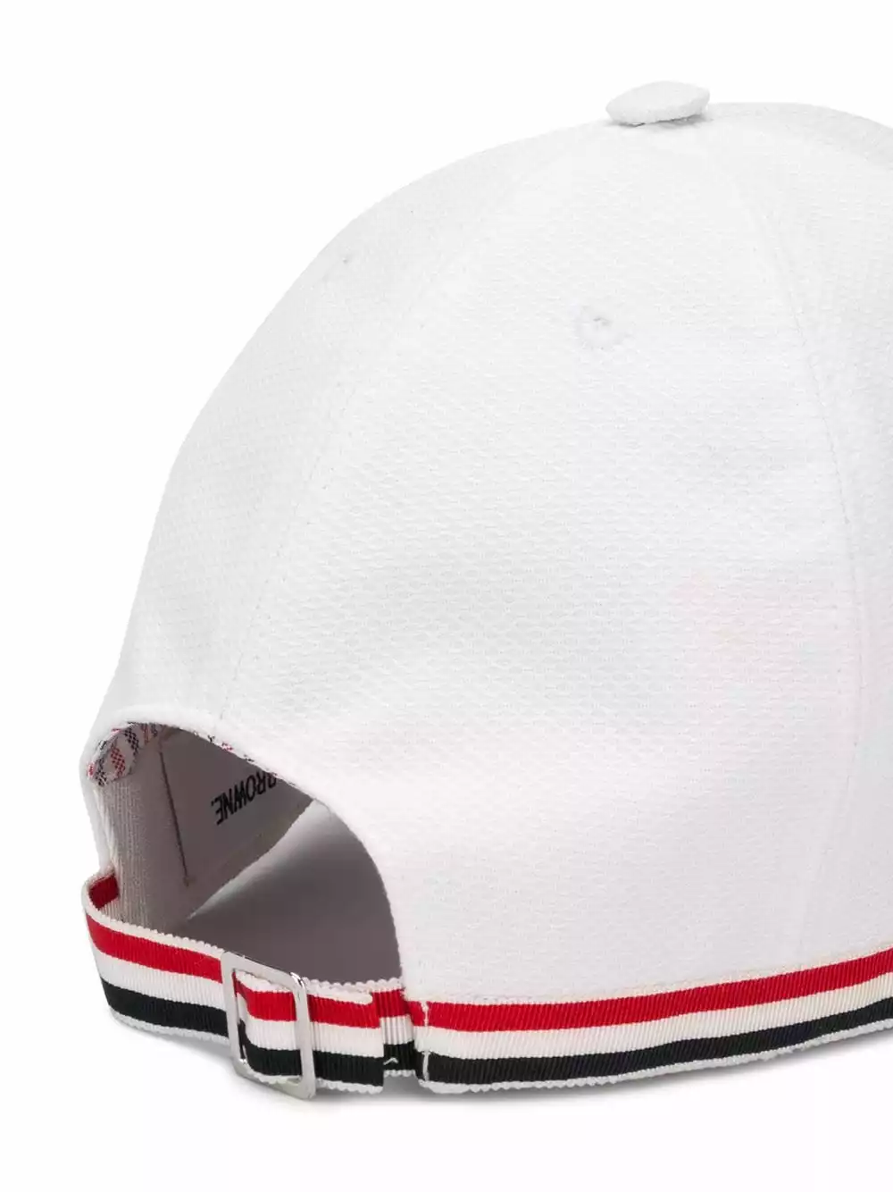 A baseball cap? It’s the ideal finishing touch. And it’s even better when it’s this RWB-stripe piece from Thom Browne. Featuring vertical panels, a curved peak, an adjustable fastening and RWB stripe.