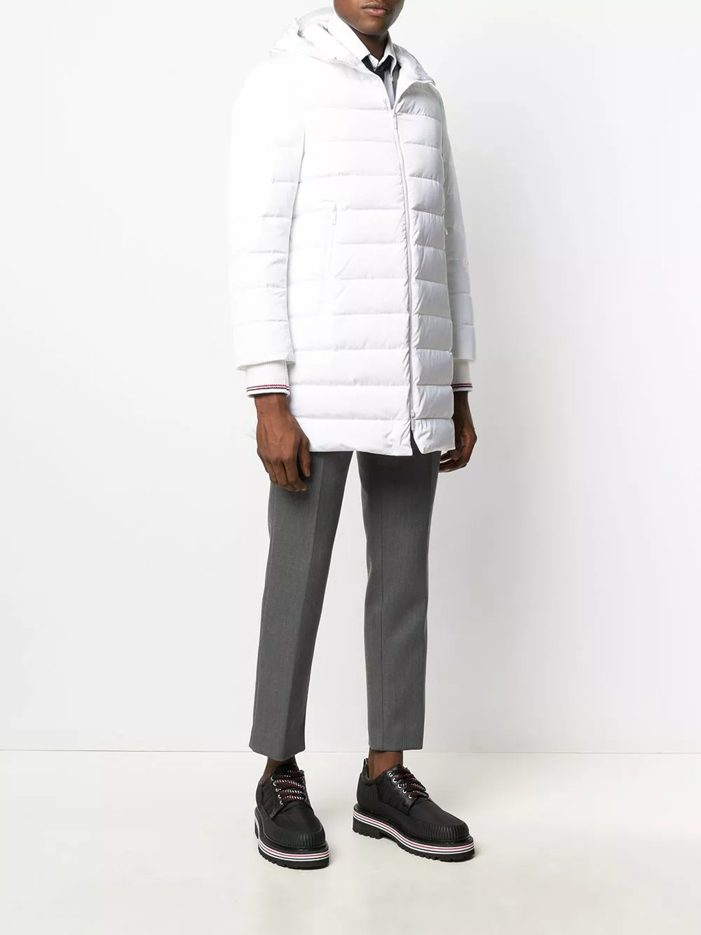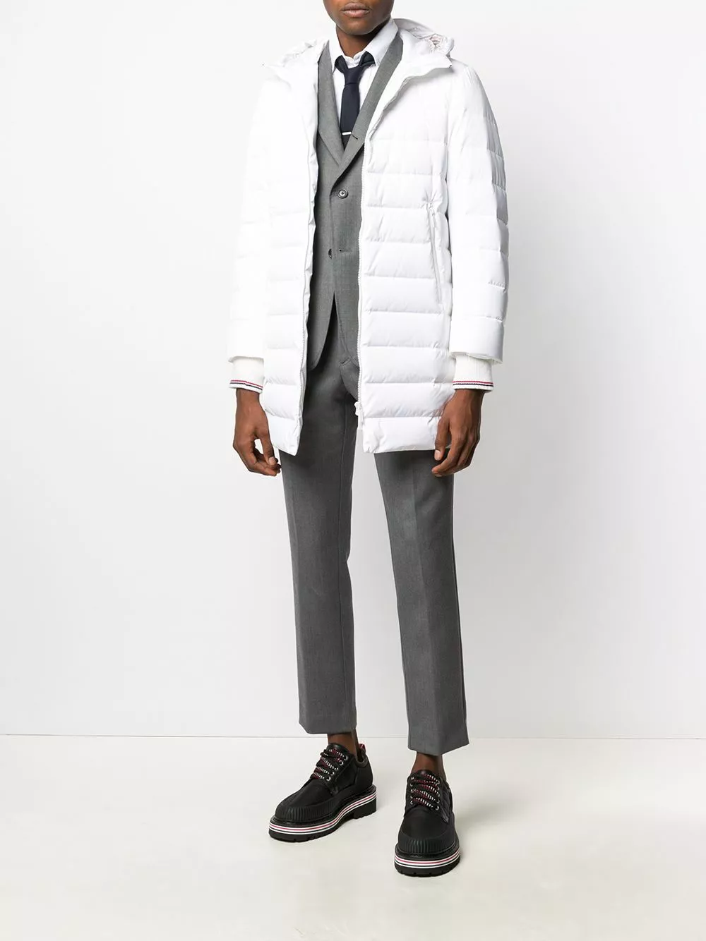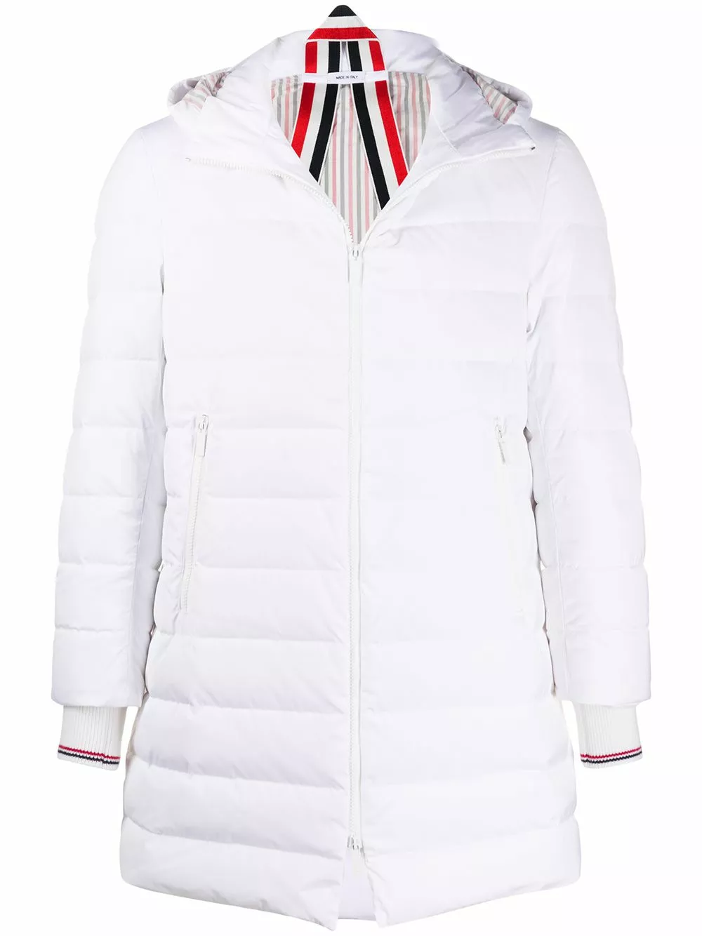 Keep warm in the coolest way possible, with this padded ski coat from Thom Browne. The goose-down padding keeps you insulated, whilst the concealed front zip fastening with tricolor detail add a practical yet fashion-forward element.