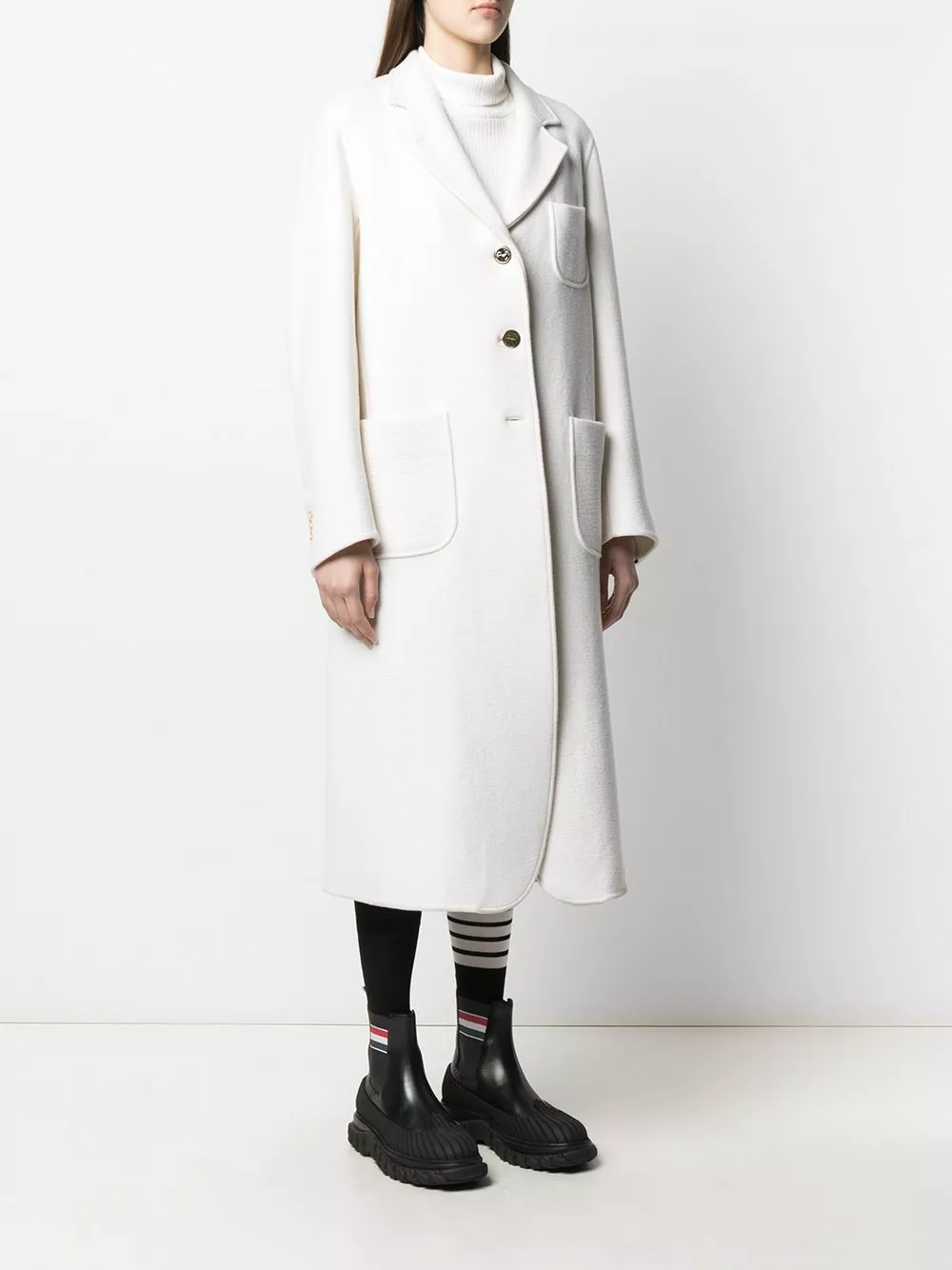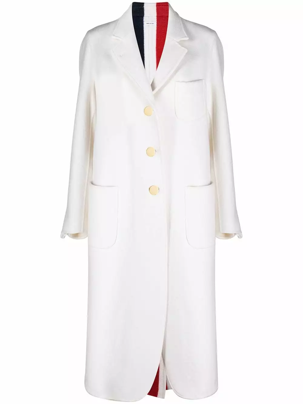 A tailored coat with a signature Thom Browne twist. With a RWB stripe running down the back, this tailored piece is here to stand out and blend in all at once. What more could you want?