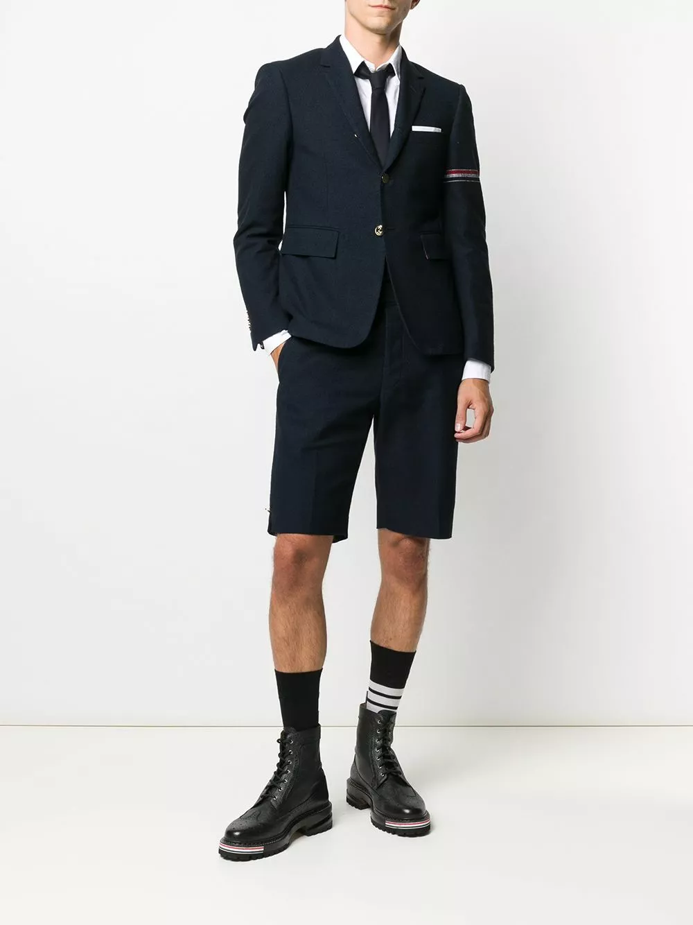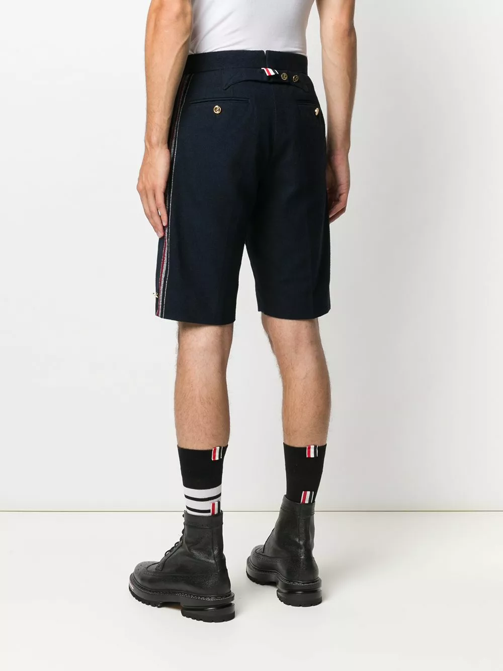 Channel your inner schoolboy, in these navy shorts from Thom Browne. The expertly constructed shorts are intricately woven from a fine cotton-polyamide mix, all topped off with the brand’s signature RWB tricolor stripe detailing. And no homework in sight.