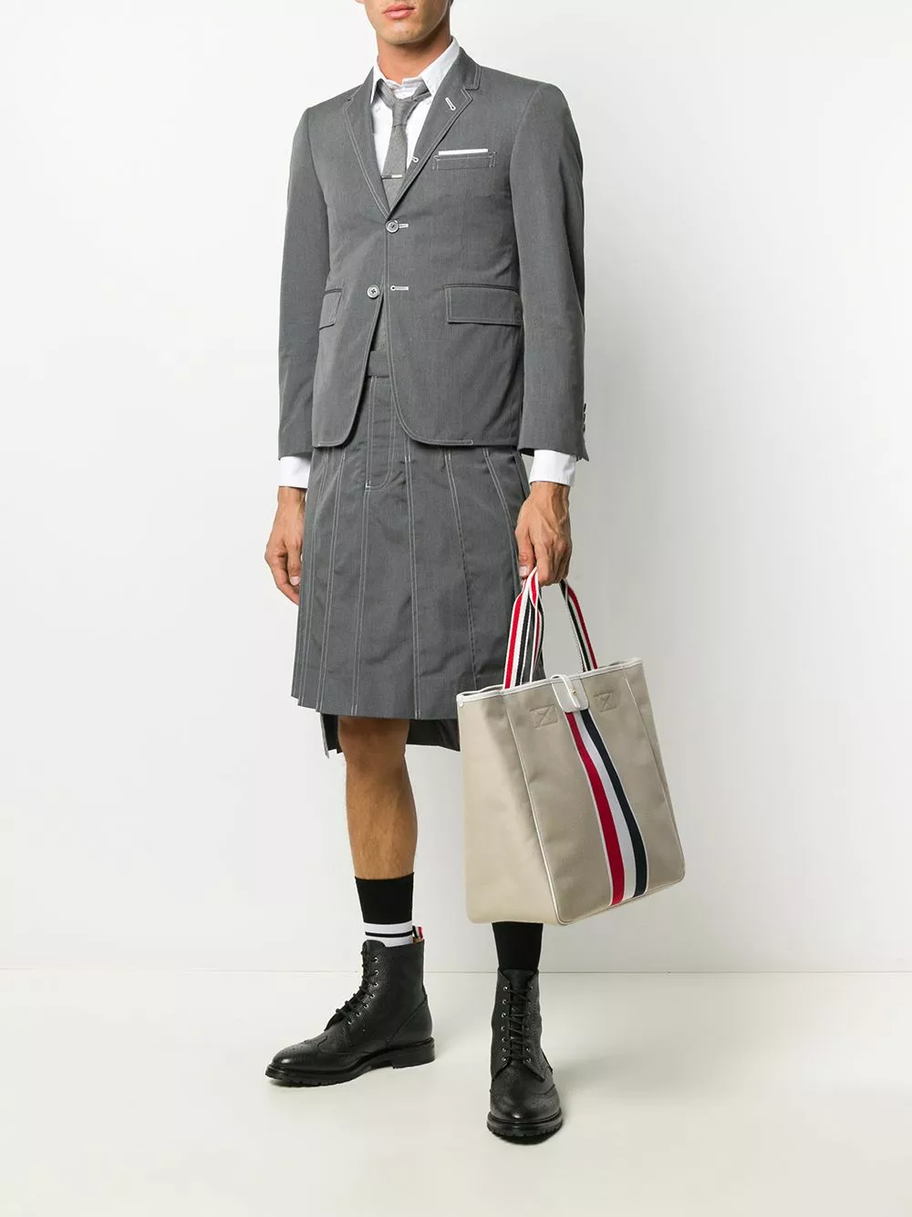 Your outfit is just waiting for that finishing touch. And luckily for your outfit you’ve found it. It’s this RWB-stripe tote bag from Thom Browne.