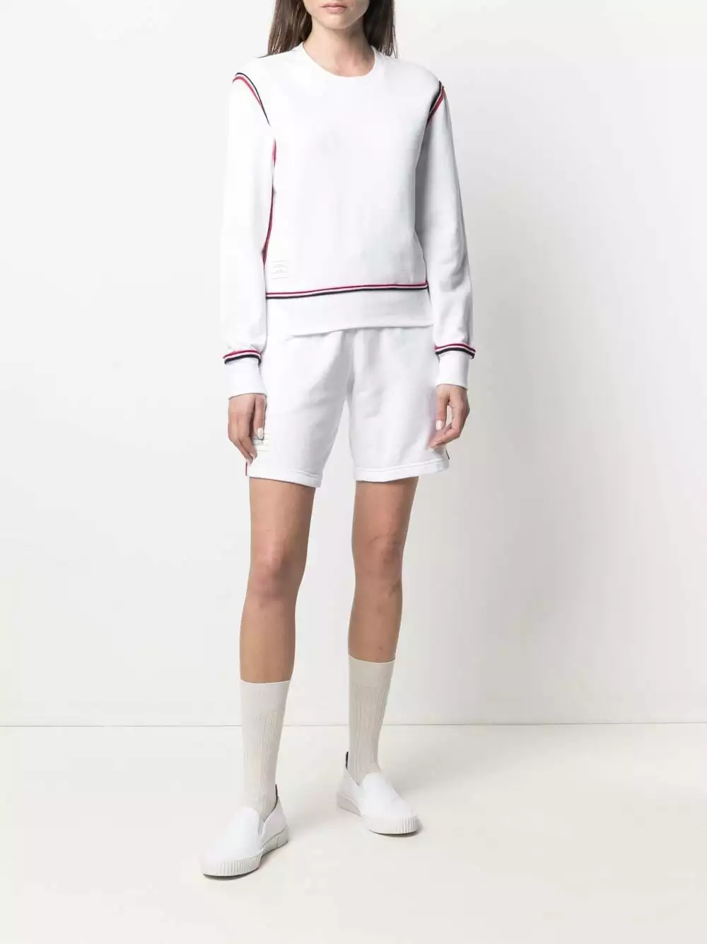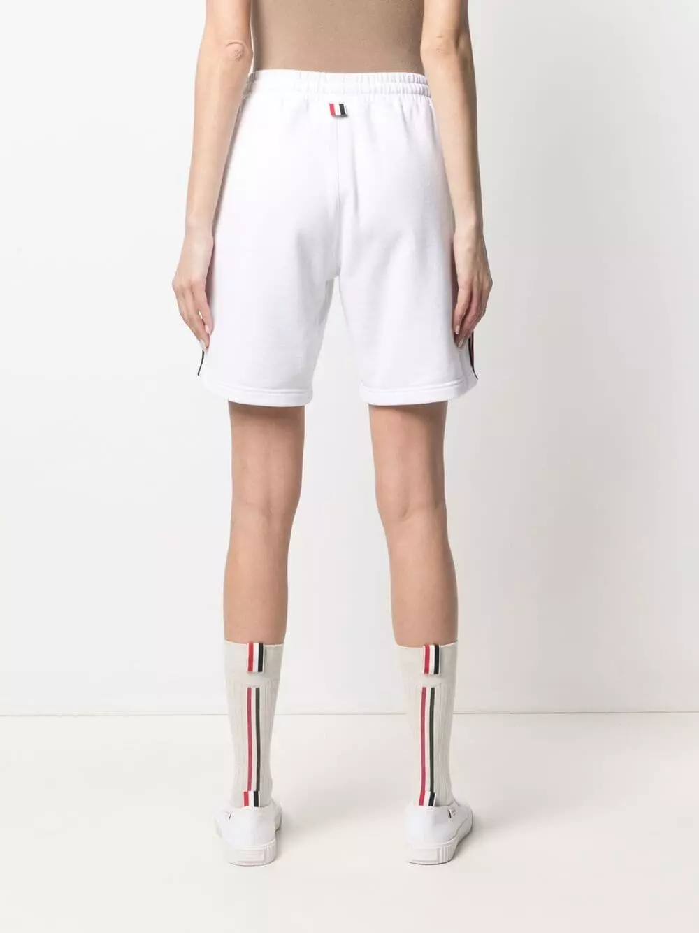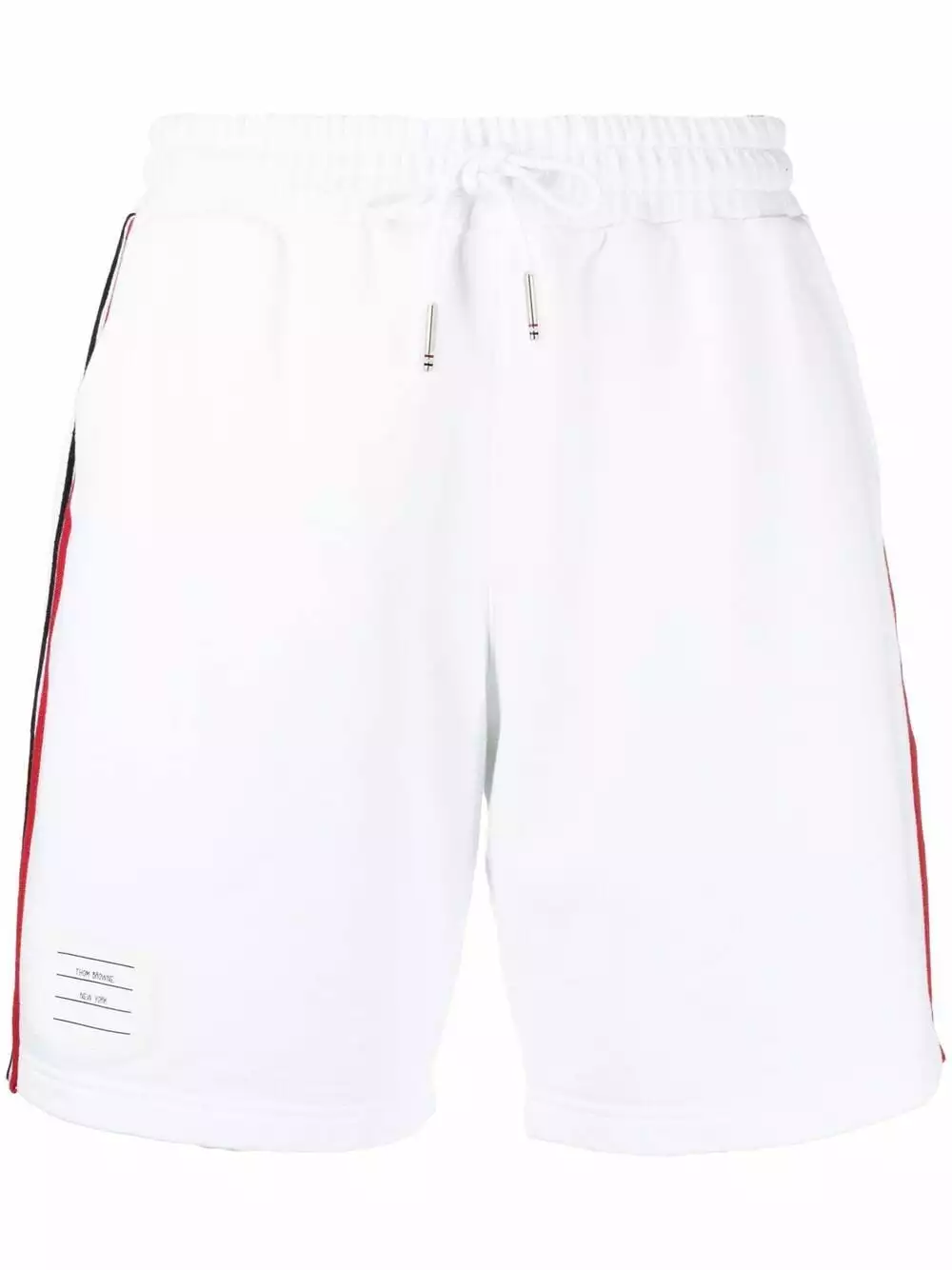 There’s no mistaking Thom Browne’s RWB stripe. Add it to your activewear collection with these high-waisted track shorts. Performance and style make a winning team.