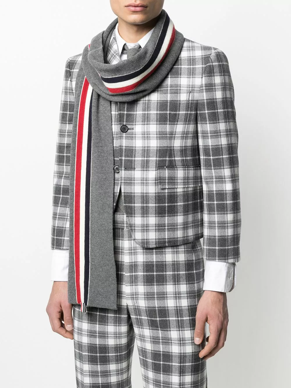 Too prepared? No such thing. Face the cold this winter with the help of this cosy Thom Browne merino wool scarf. Throw on and head out.
