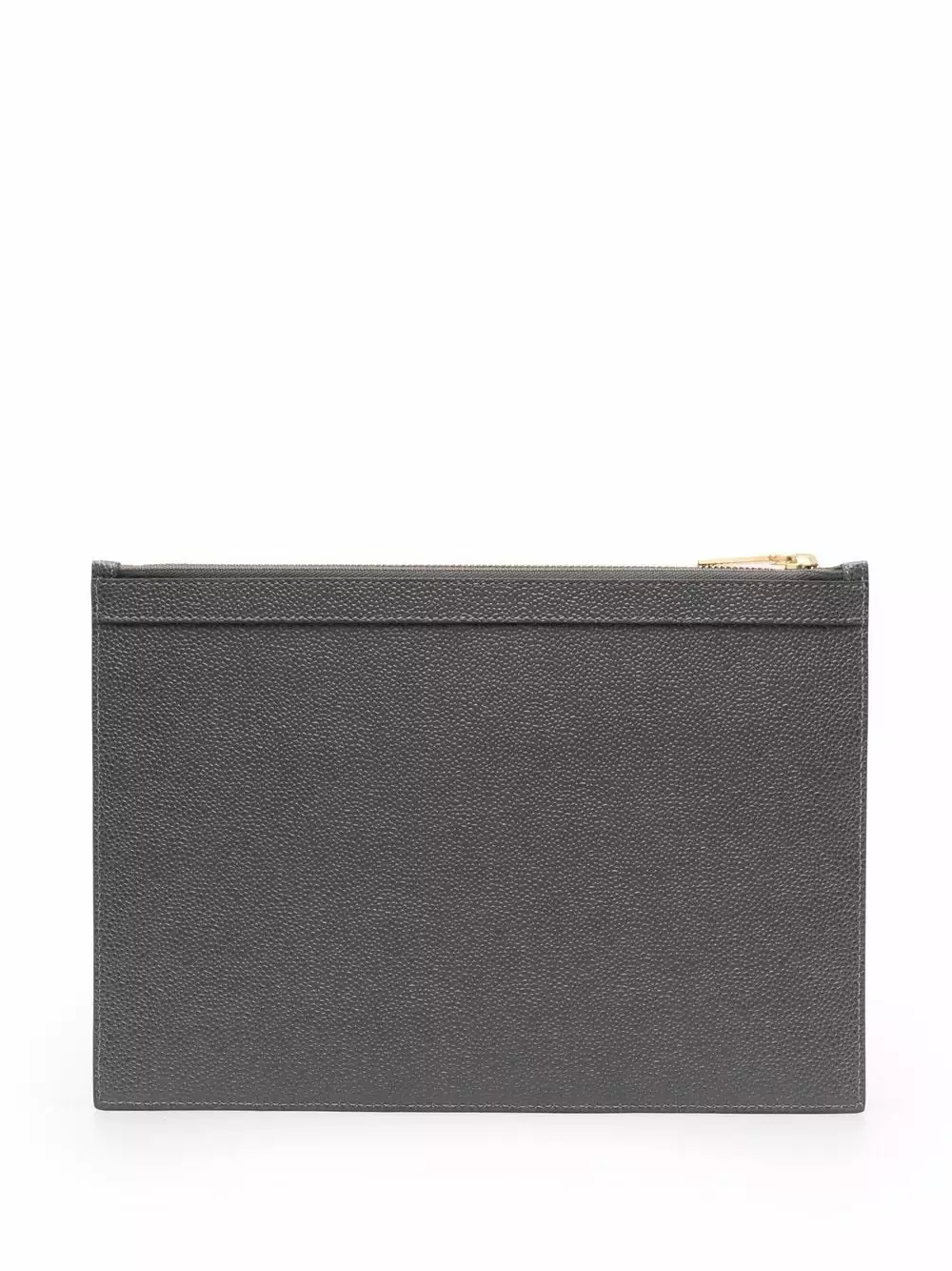 Thom Browne’s iconic RWB stripe tab is seen season after season, and the label’s accessory collection is no exception. The unmistakable theme is seen here against a leather construction, adding a branded finish to its grey-tone design.
